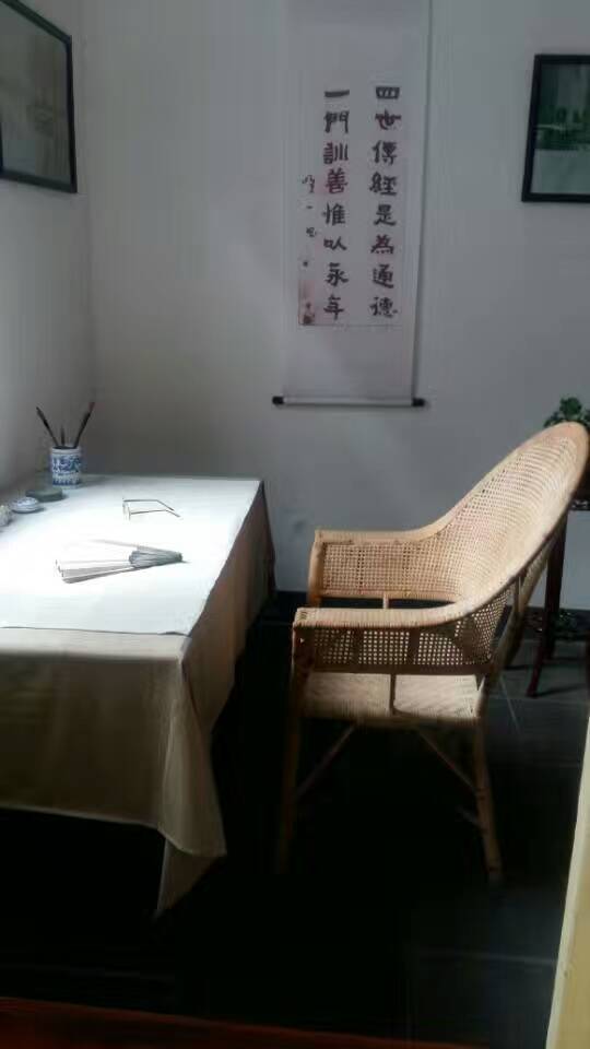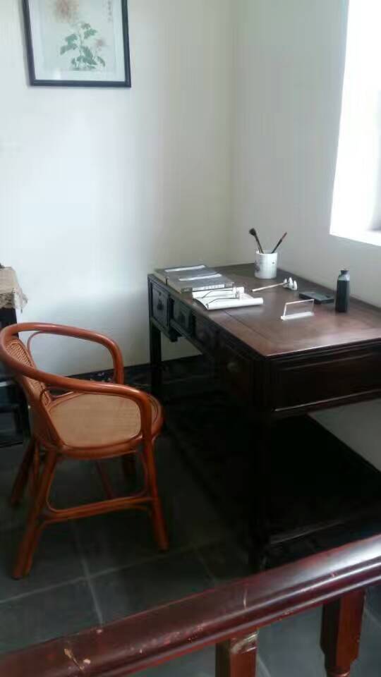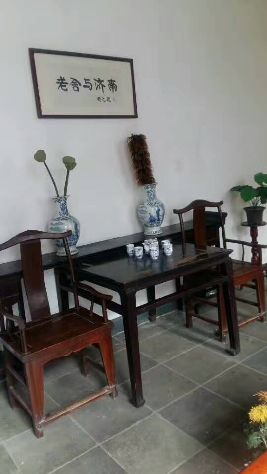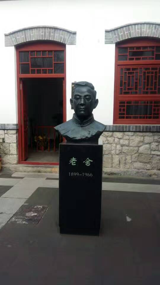 新年第一天的阳光打在书桌上、圈椅上,眼镜、笔筒中的毛笔,随意放着,似乎主人刚刚出门。写作倦了,去附近非正式的公园——齐鲁大学散散步。到老舍家串串门,南新街58号,老舍在济居住四年半,有三年是在这个小院度过的。齐鲁大学,现山东大学趵突泉校区,仍习惯称作“山医”——山东医科大学。 看看当年小院中的水井,欣赏下当年小院中的大荷花缸,32岁到35岁,老舍与胡絜青婚后住在这里,大女儿舒济出生于此。老舍任齐鲁大学国学研究所文学主任兼文学院教授,胡絜青在齐鲁大学附中教国文。水井已被保护起来,荷花缸里几丛芦苇散漫长着。老舍一生爱花成癖,早起浇花,写作,午睡,去齐大散步。洁净的小院一尘不染。据上年纪的工作人员说,当年老舍租住这院中北面房间。书房,客厅,卧室,一字排开,面积不大,整饬有序。卧室挂着两人的结婚照,老济南四合院的悠闲安稳,余韵宛在。小四合院位于胡同深处,可谓是个闹中取静的好地方。与老舍做了邻居,似乎离民国时代近了许多……院中石榴树成了剪影,耸入天空。今天,应该应了老舍的话了吧——“济南的冬天是响晴的”,“在北中国的冬天,而能有温晴的天气,济南真得算个宝地”。新年第一天,有了春天的节奏。跟着老舍,几步就到了趵突泉,三股水汩汩喷涌,水边腊梅悄然开放,想必是老舍一家见过的样子吧。正月花灯紧锣密鼓摆放中,肢解成几段的白色长蛇状花灯,头戴花冠,红色嘴巴,猜它是什么,龙?蛇?孔雀?请教正忙碌的师傅,才知道是只大鹅。好吧,春江水暖鹅先知……岁月安好,静默如初。
