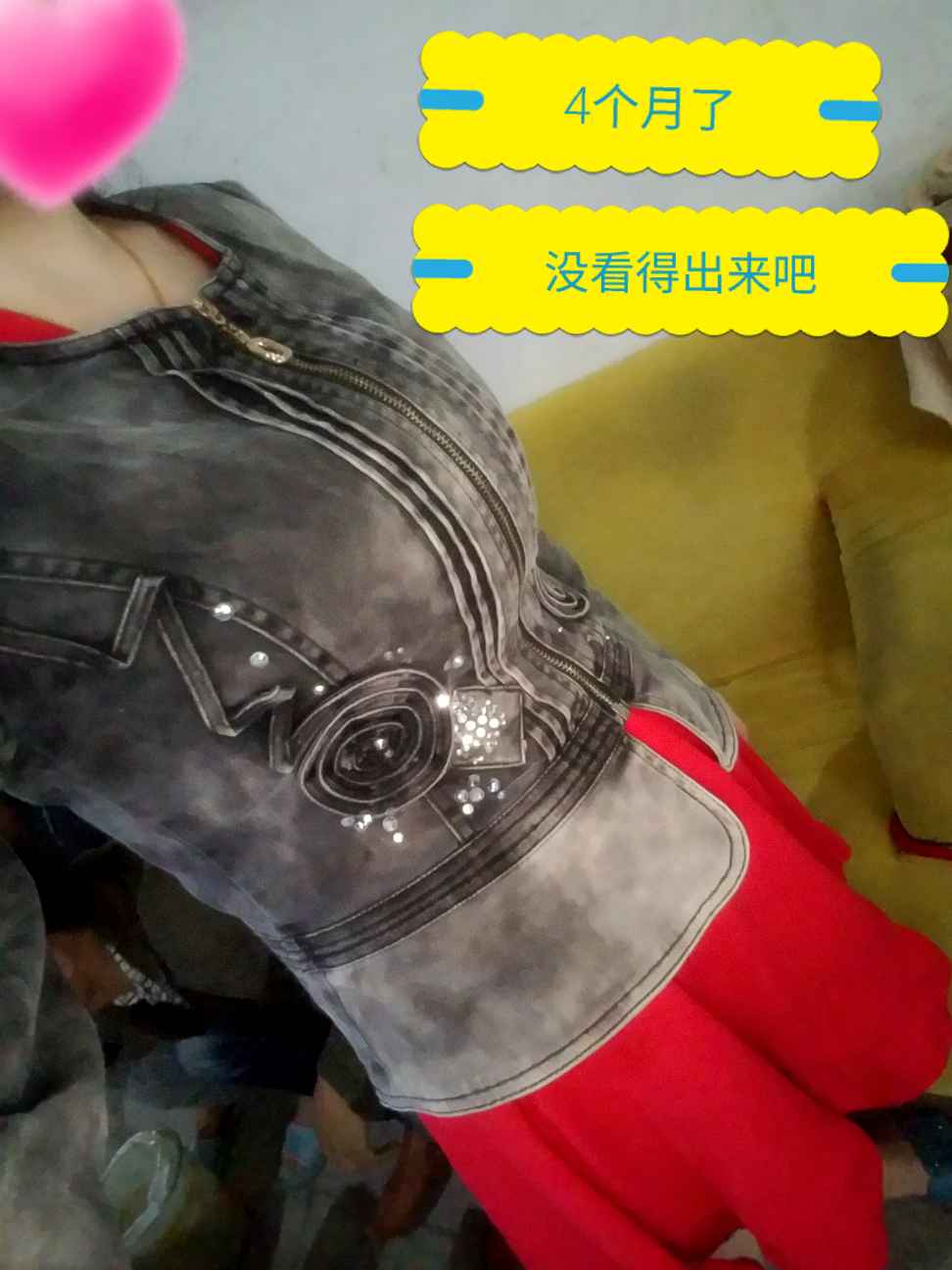 这次我怀孕了,一直都不想他家的亲人知道我,因为之前怀了几次都没了,怕了,觉得好丢人!所以这次他们来之前,我就穿上了外套(刚好今天降温了)想着这样能盖着肚子,他们就不知道了!