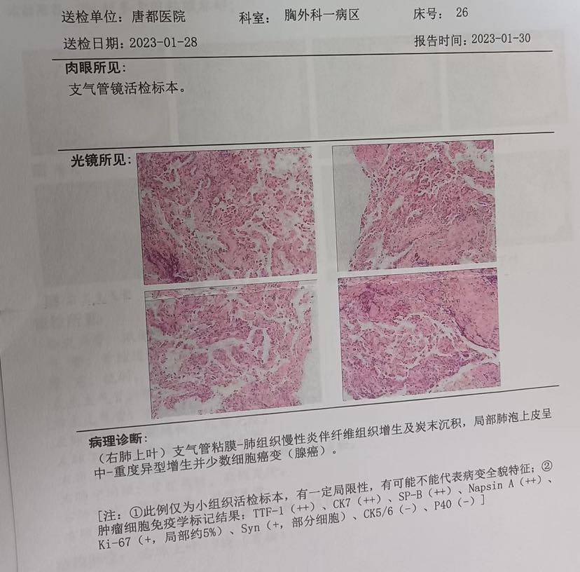 2.3:肿瘤位置不好,做支气管镜只取了一点点组织,用来做病理检测了,没办法只能抽血做基因检测。