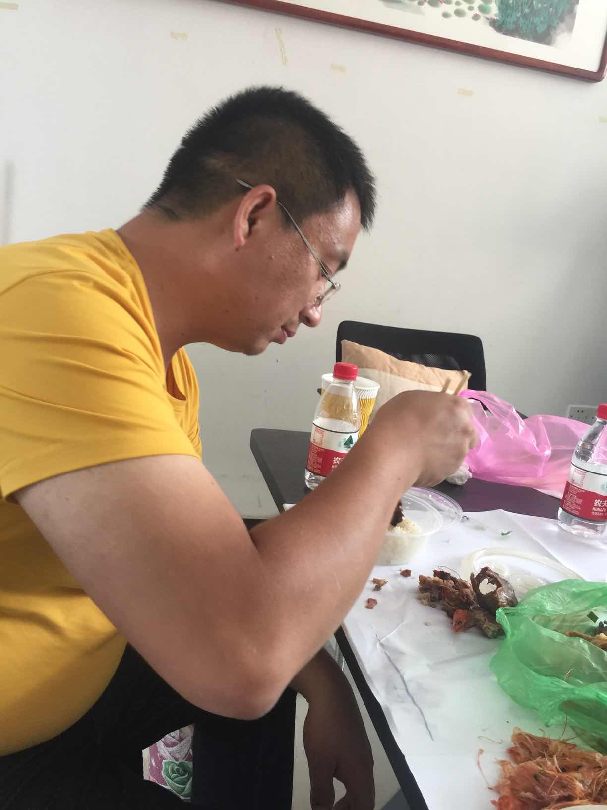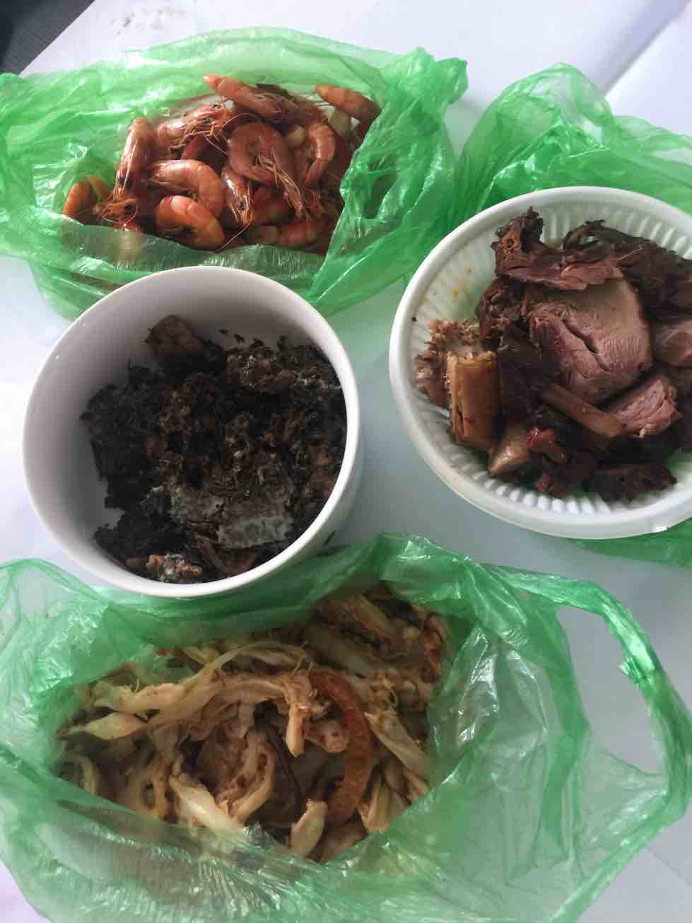 老板今天带了梅干菜肉,昨晚一起吃饭,还让我把没动的鸡鸭,爪子,虾都带回来,今天中午一大桌子菜了。。