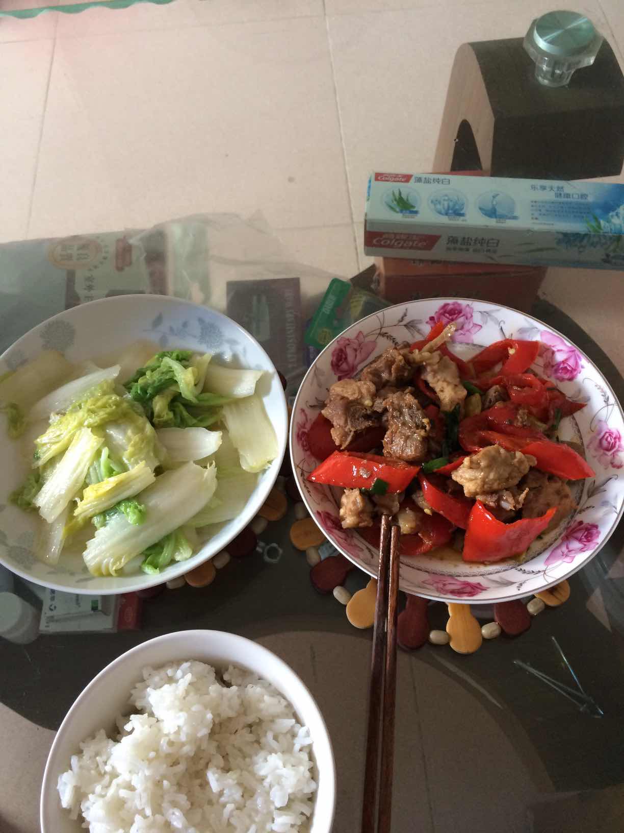 家常菜,娃娃菜,排骨炒辣椒,开饭咯!