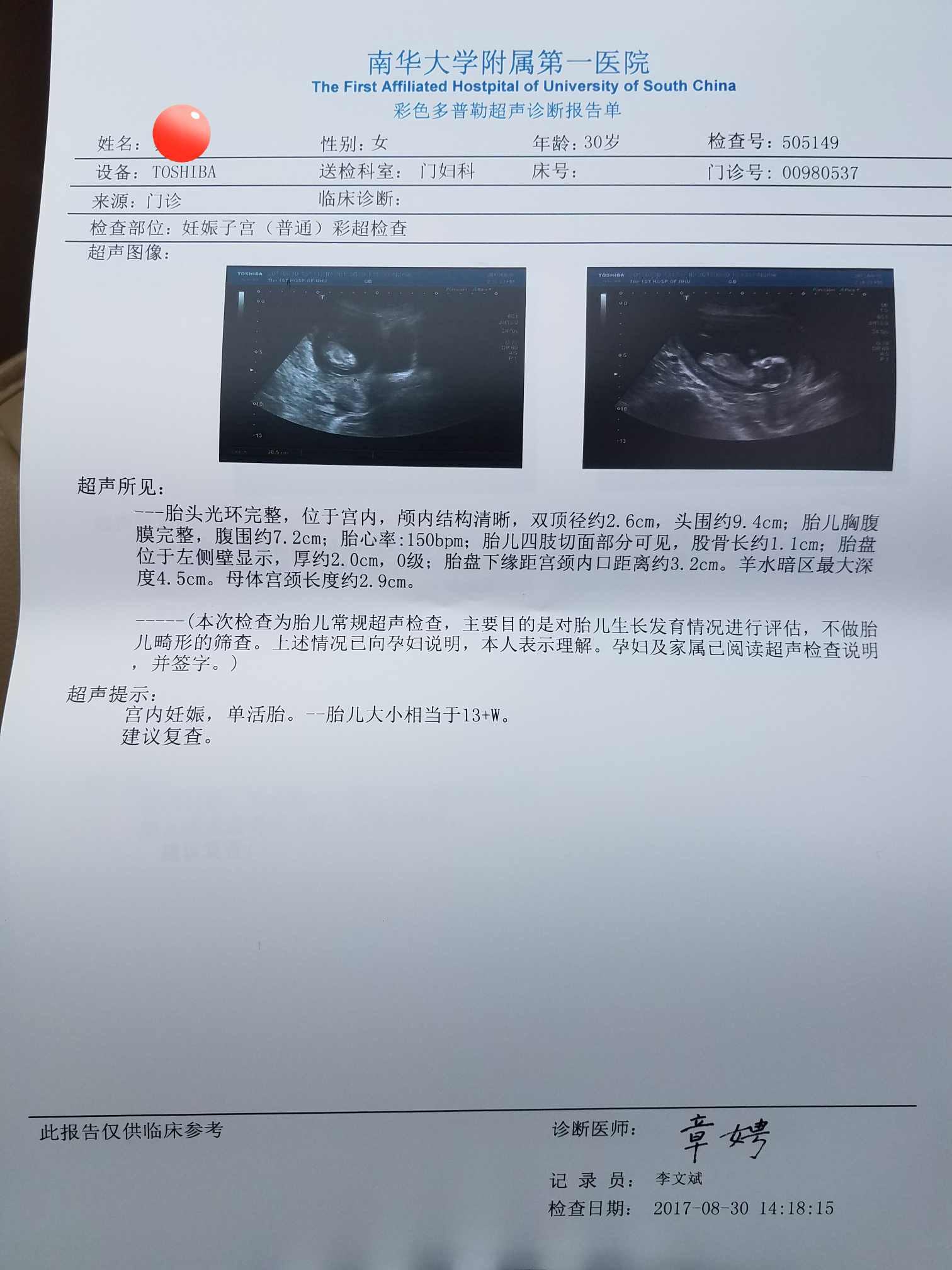 后来老公出来了告诉我,说那里有b超照,但老公和医生说了我的原因(宫颈机不全)医生就说,这里照不了,照不清楚,说这里的机器设备不是很好,还是建议我们去附一(平时复查的医院)老公说他们没遇到这样的也怕,怕到时候真的出事了看不清楚要他们负责,所以我们就没做b超了。