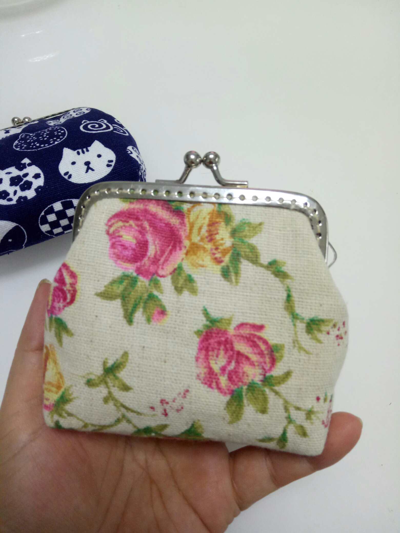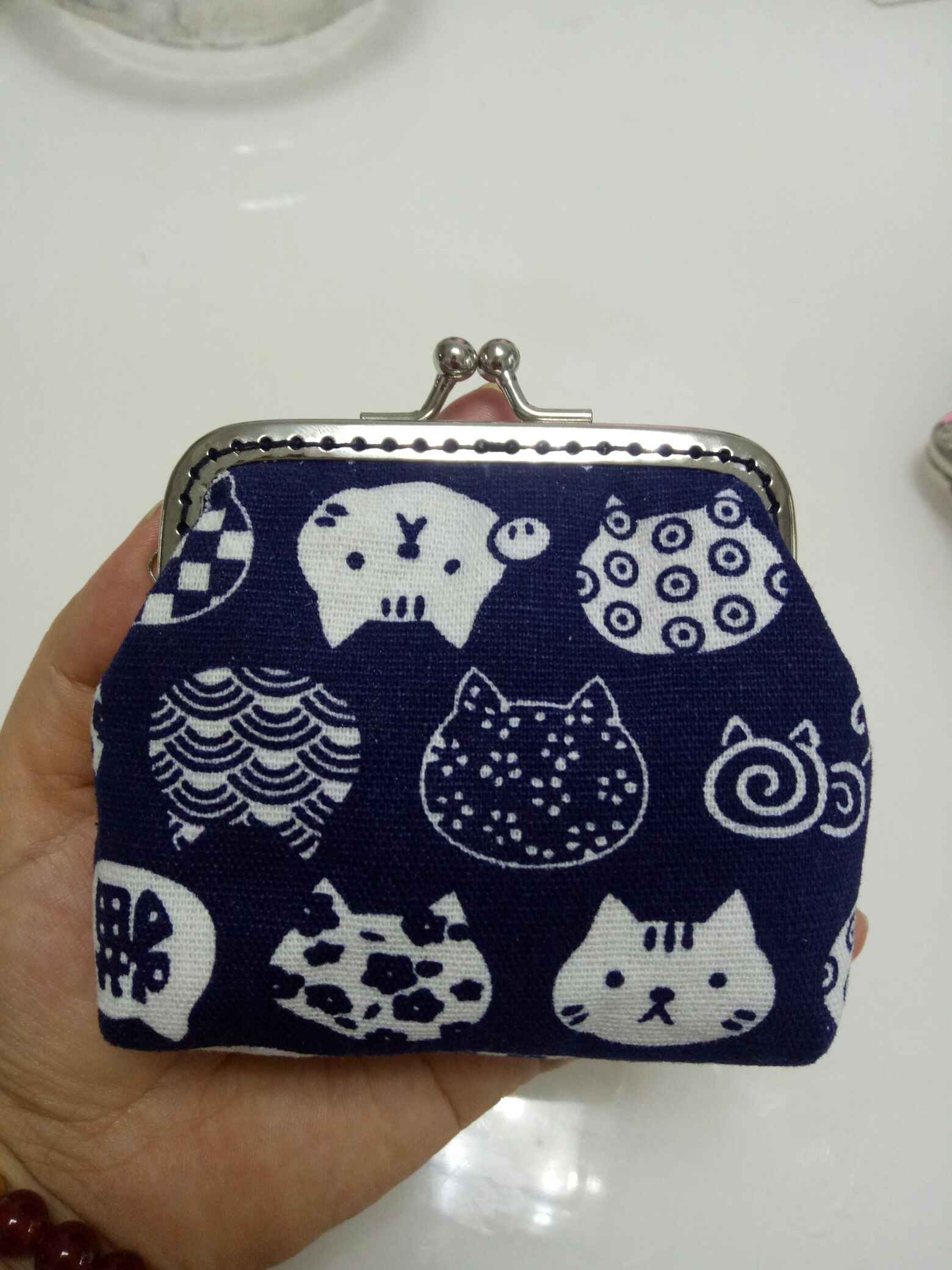 小口金好精致哦,小猫咪图案很可爱,那个花布跟我的一样哈,你买的不是材料包吧