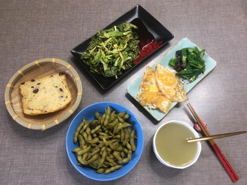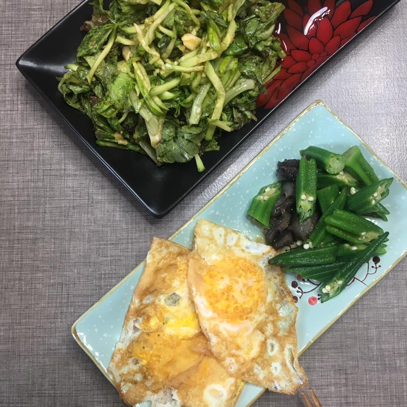 黄瓜🥒拌生菜和秋葵拌海参、煎蛋