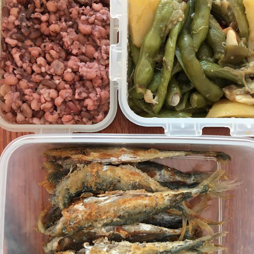 工作午餐哥们掌勺:薏米红豆芡实茯苓粥/豆角烧土豆/煎燕拔鱼