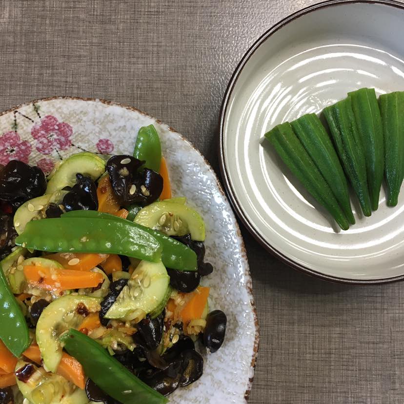 白灼秋葵/黑木耳黄瓜拌荷兰豆🥕