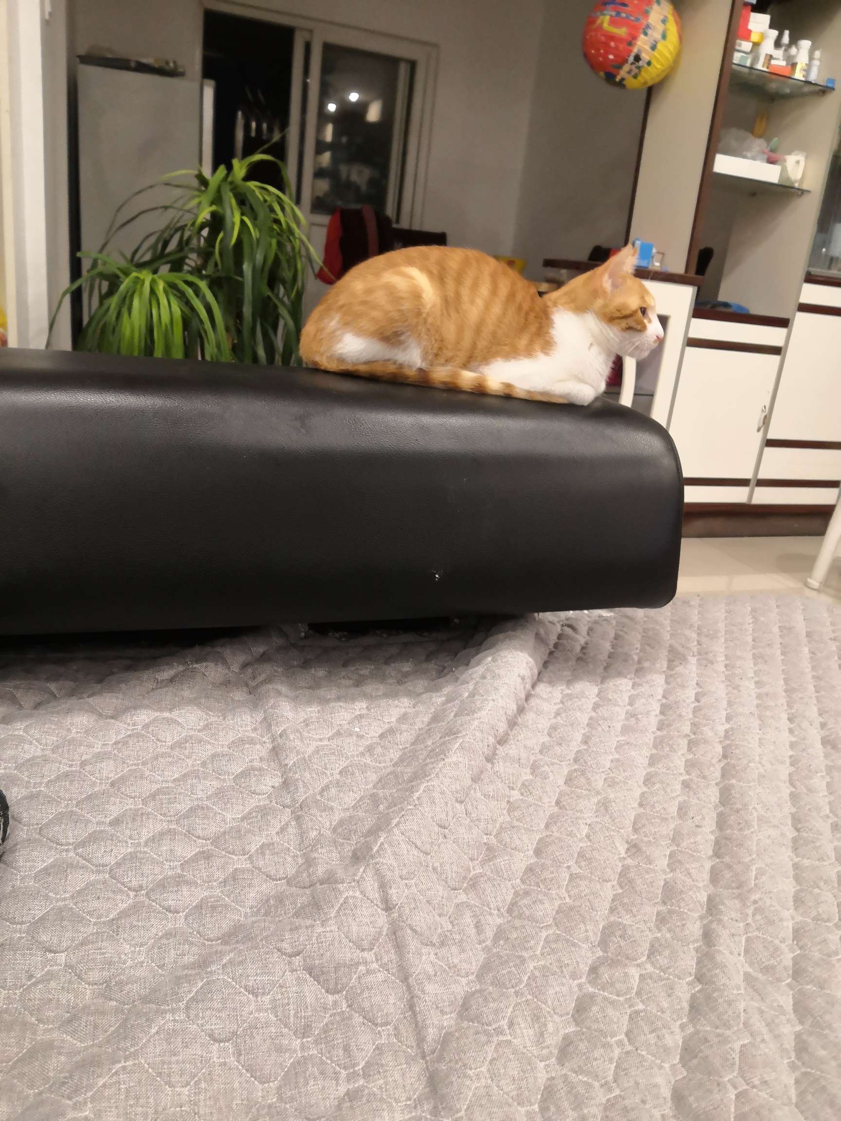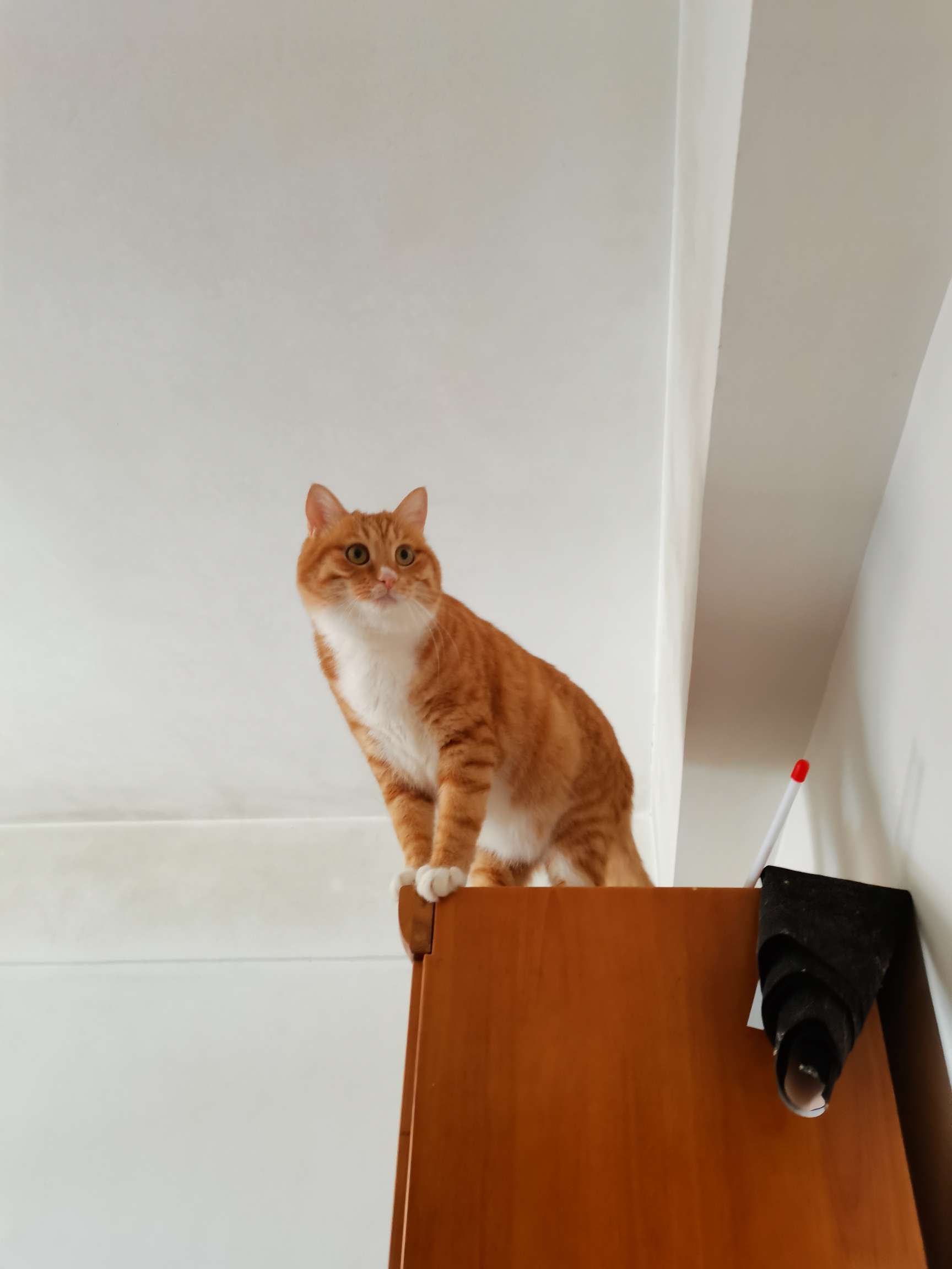 儿子领养的一个🐱,对猫比对我们好,准备吃饭时猫跳上桌子,我把它推下去,儿子说你把它抱下去不要推它。