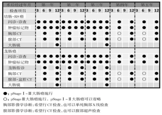 (6)Ⅳ期大肠癌切除后和复发灶切除后的复查,按照表中pStageⅢ的内容进行,转移灶和复发灶切除后再次复发的病例不在少数,应引起注意。