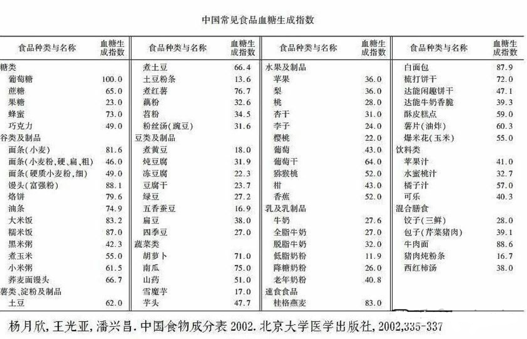 尤其是精制糖的摄入(比如食品原料表里的白砂糖、果葡糖浆、麦芽糖浆、葡萄糖等,具体食品则有普通饮料、糖果、巧克力、饼干、蛋糕等),这是由于肿瘤细胞对葡萄糖的摄取能力较强,而且以糖酵解的代谢方式为主。下图即为常见食品血糖生成指数(越低越好):