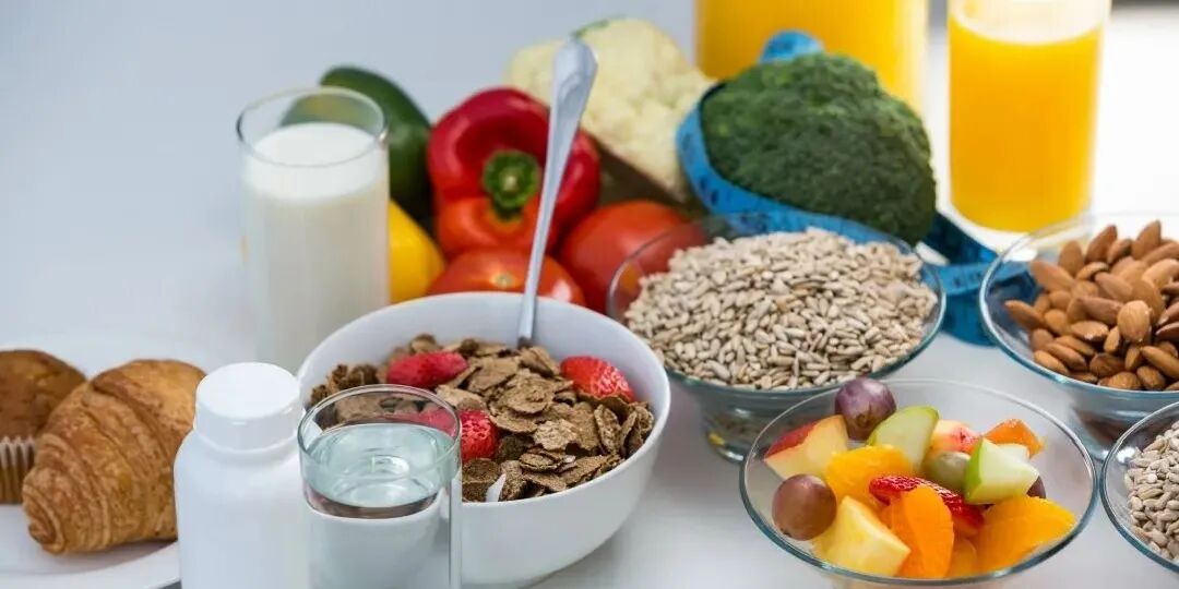 而对于常见的米、面粉及其制品,我们按照比正常人稍微吃的少一点,比如将一天三餐中的一餐米面类主食换成粗粮,以增加膳食纤维的摄入量,减少糖的摄入。