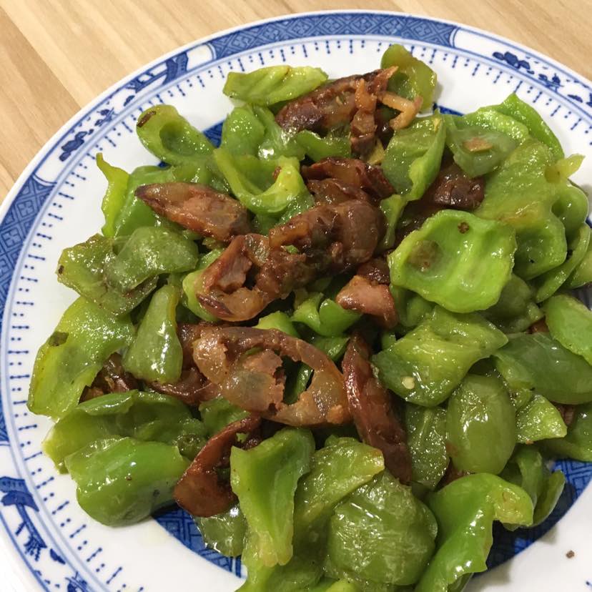 午餐:腊肠炒青椒,腊肠自己做的。