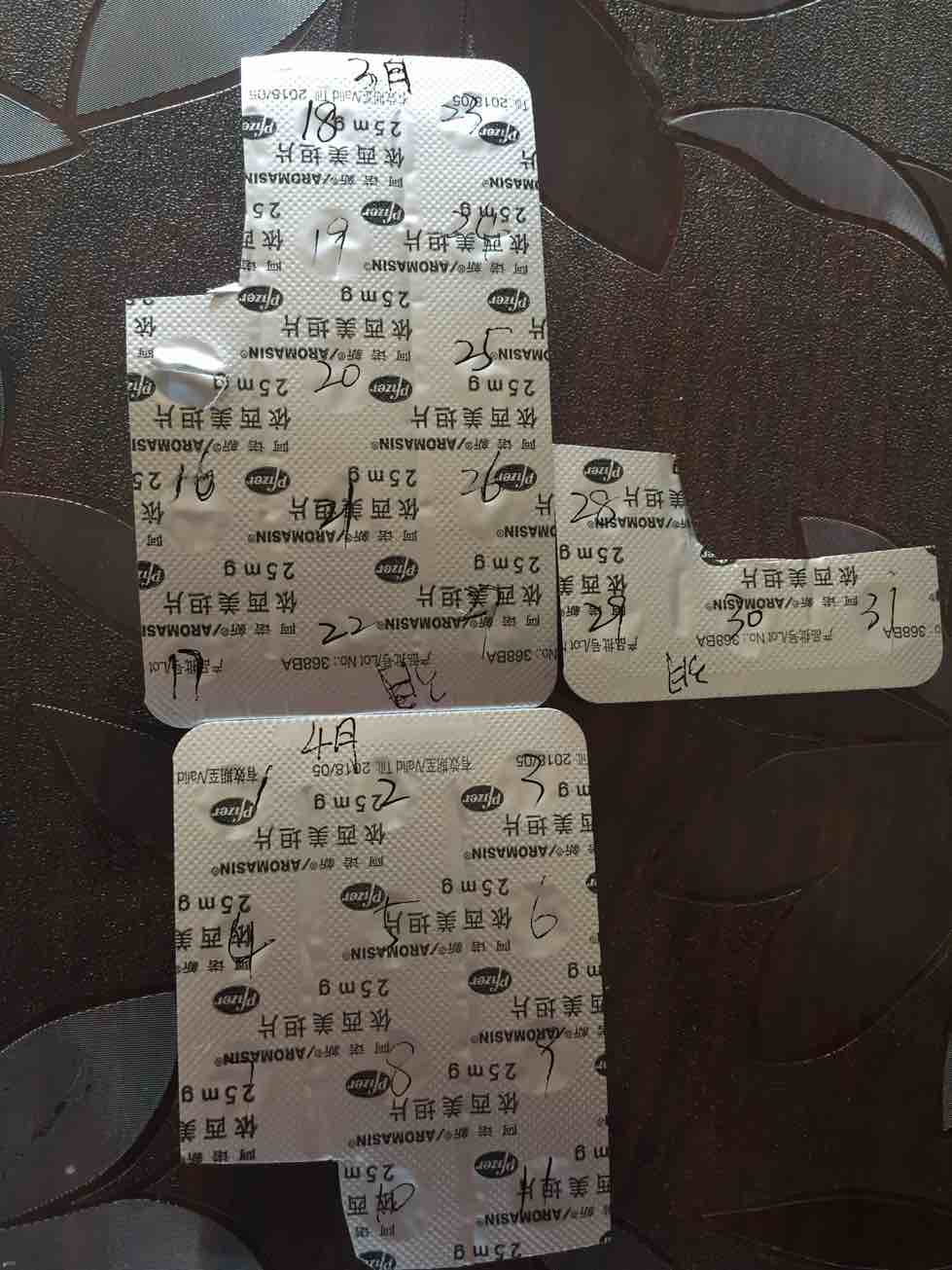 吃内分泌药已经有一段时间了,依西美坦(阿诺新)每日一粒,由于化疗脑记忆力急剧下降,经常拿着药片纠结于有没有吃过?今天突来灵感将每一粒上提前写上日期,哈哈 以后再不用纠结这事了,今天排版写日期有点凌乱,下次写得整洁点哈 如有病友与我有相同脑子可借此于参考,或许有更独特的方法