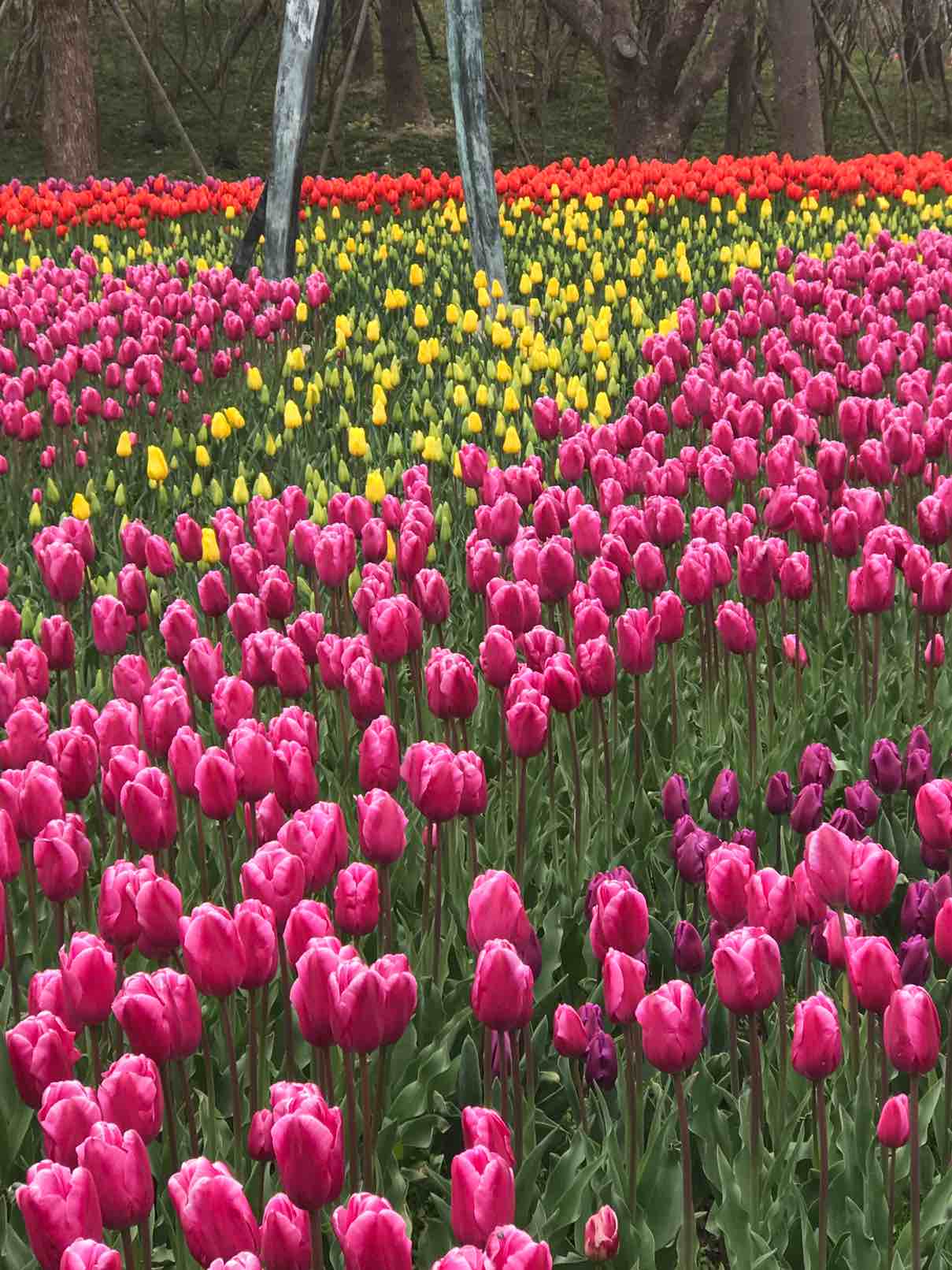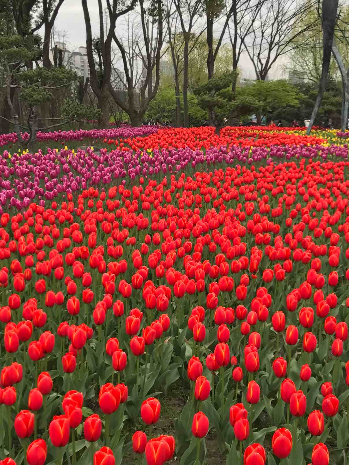 是上海公园里吗?有点象无锡梅园的郁金香花。漂亮艳丽,看着开心!