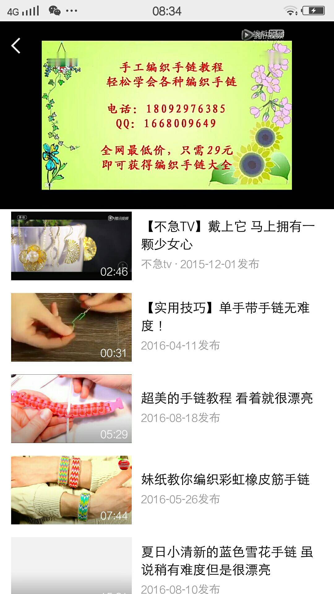 那天看女儿班级文艺汇演时很多家长都去给孩子们鼓劲加油,帮化妆的,帮录像的。心里很感动。女儿已经上初二了,在一个温暖有爱的集体里快乐地生活中,我想化妆和拍照都不是我的强项,我给他们每人编个手链吧!这几天在网上到处查找编织的视频、图解。在腾讯视频里发现了一家的编织教程,感觉很不错噢!有需要的姐妹可去关注下!当然,我是零基础的,不知道那些教程对大家是不是过于稚嫩了
