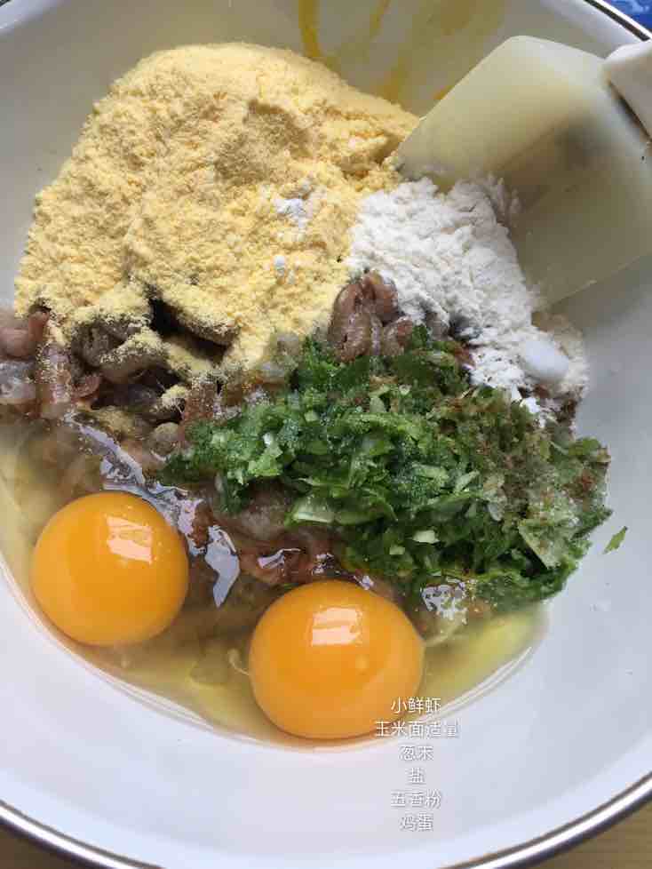 配料的量上掌握,主要是玉米面不要太多,有一点使🦐能黏上就好,放多了就没有🦐味儿了。