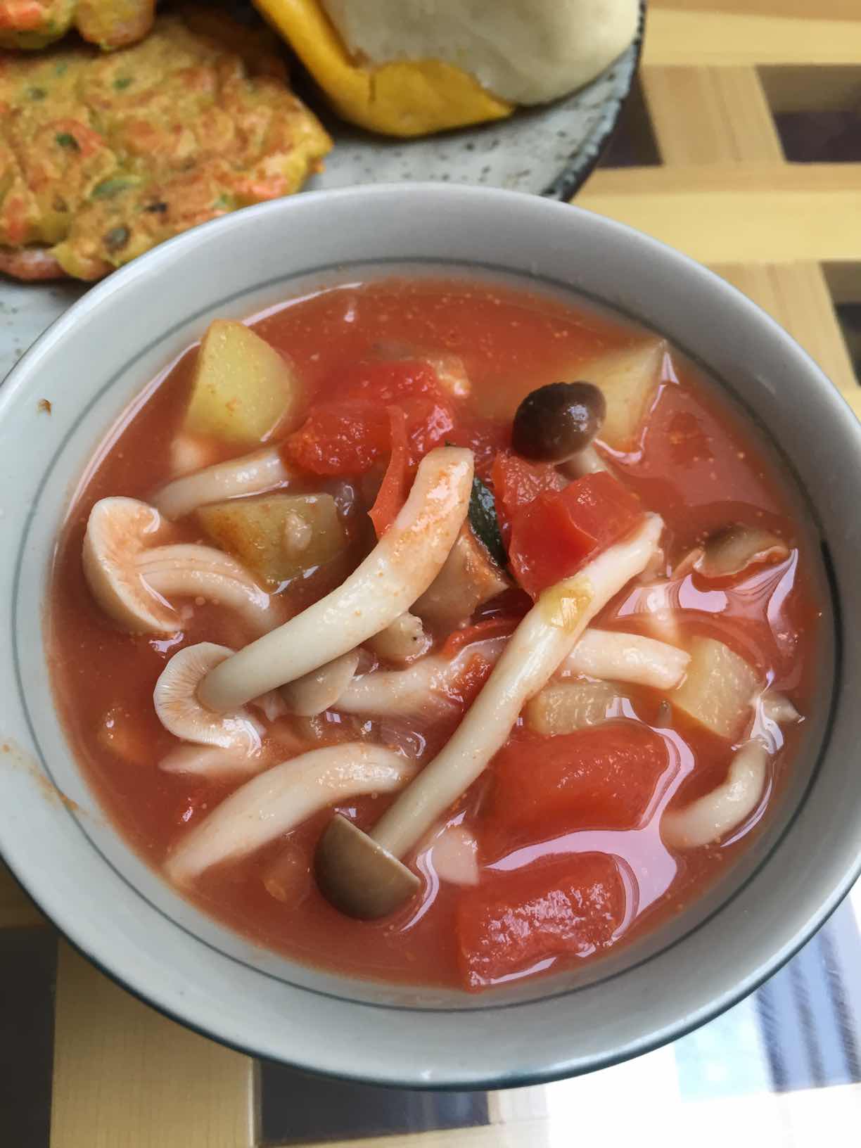 🍅牛尾汤里面放了点自制的番茄酱调味,🍅味道浓浓的,很是不错