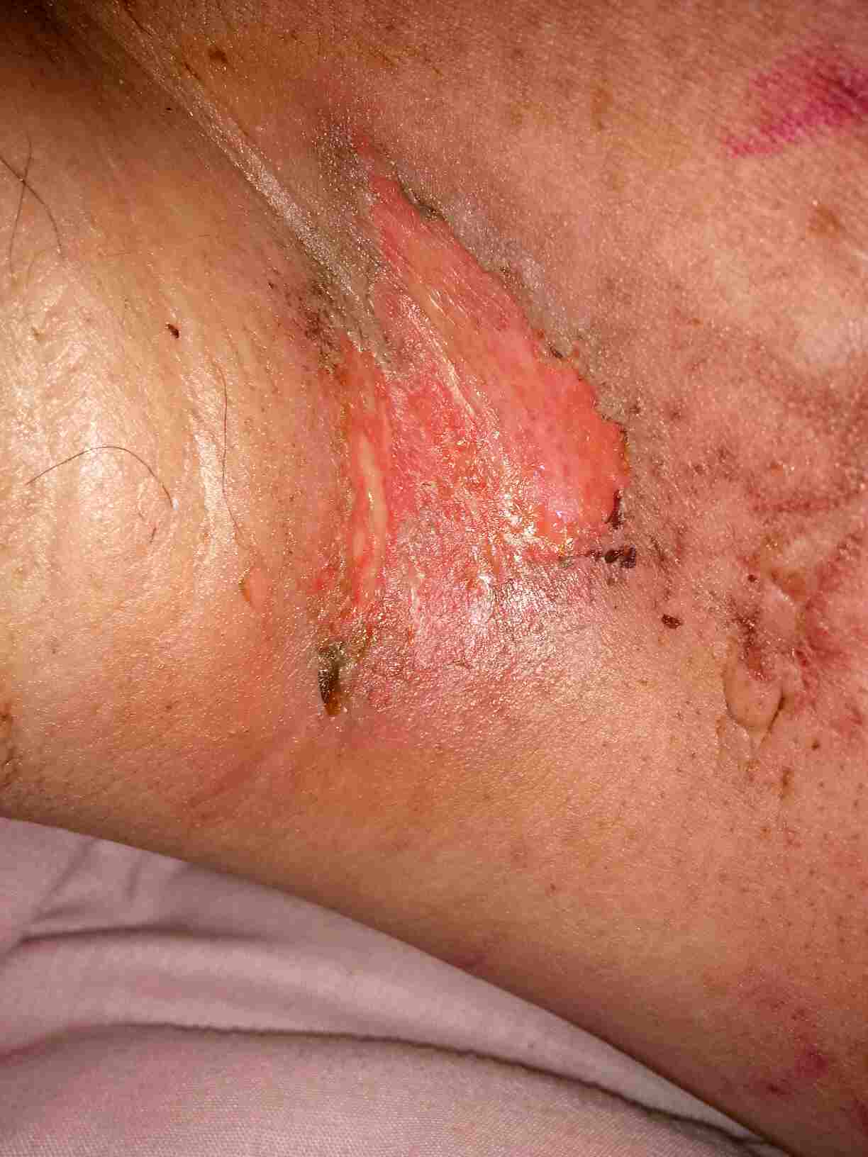 感染了,去大医院的烧伤科处理下,这在他们那都是常见的。