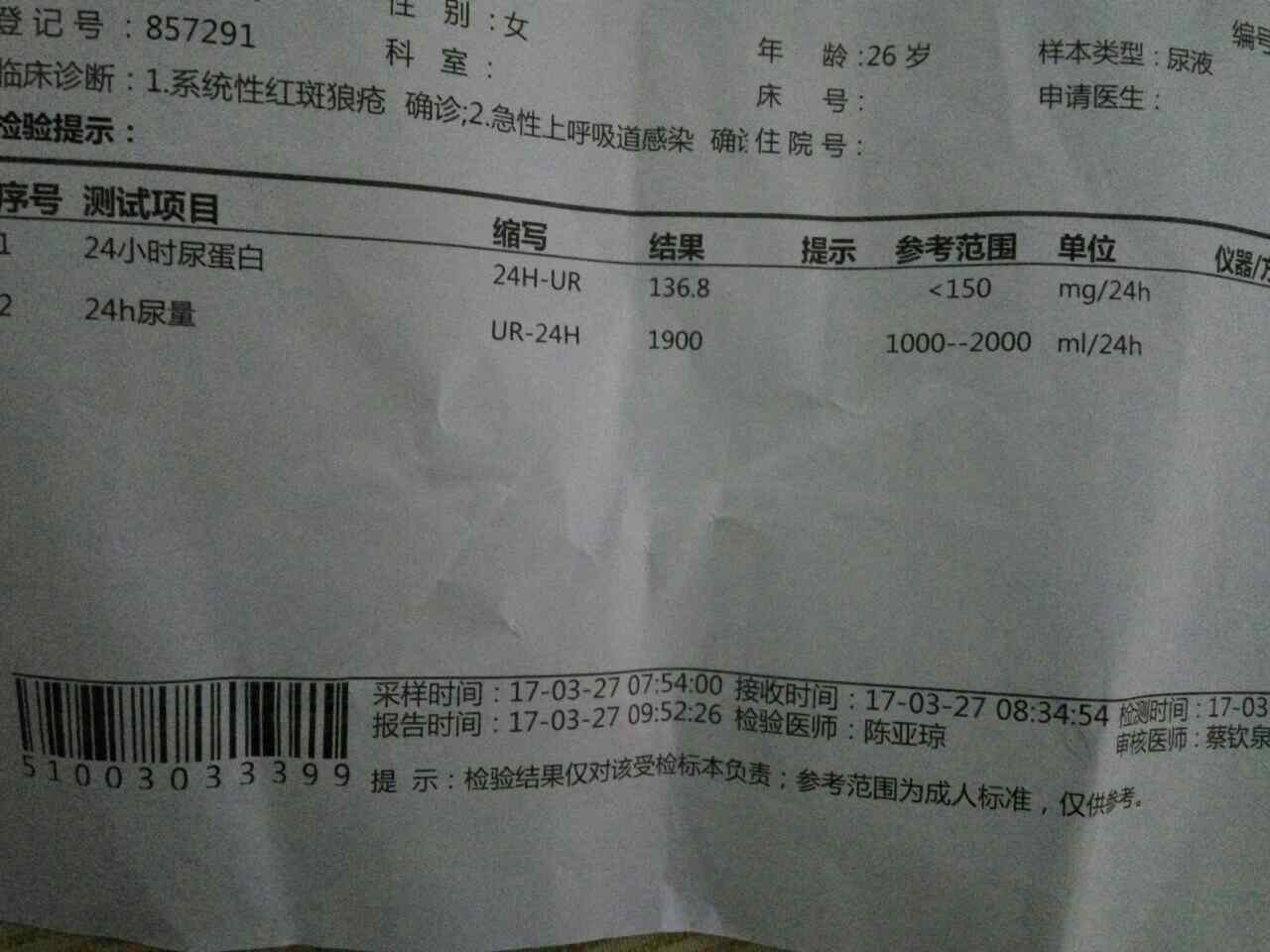 记录下:尿蛋白终于转阴了,挺开心的,差不多一年了,一开始的时候是7000的。今天叫医生给我补个病假单,我说能不能写其他病症,就写个高血压好吗,我不想同事问我那么多。医生想了下:恩行,反正你也有高血压。哈医生好可爱