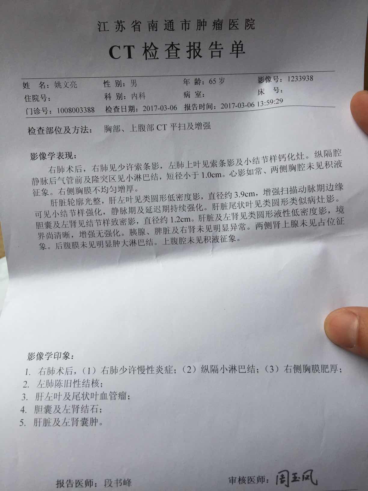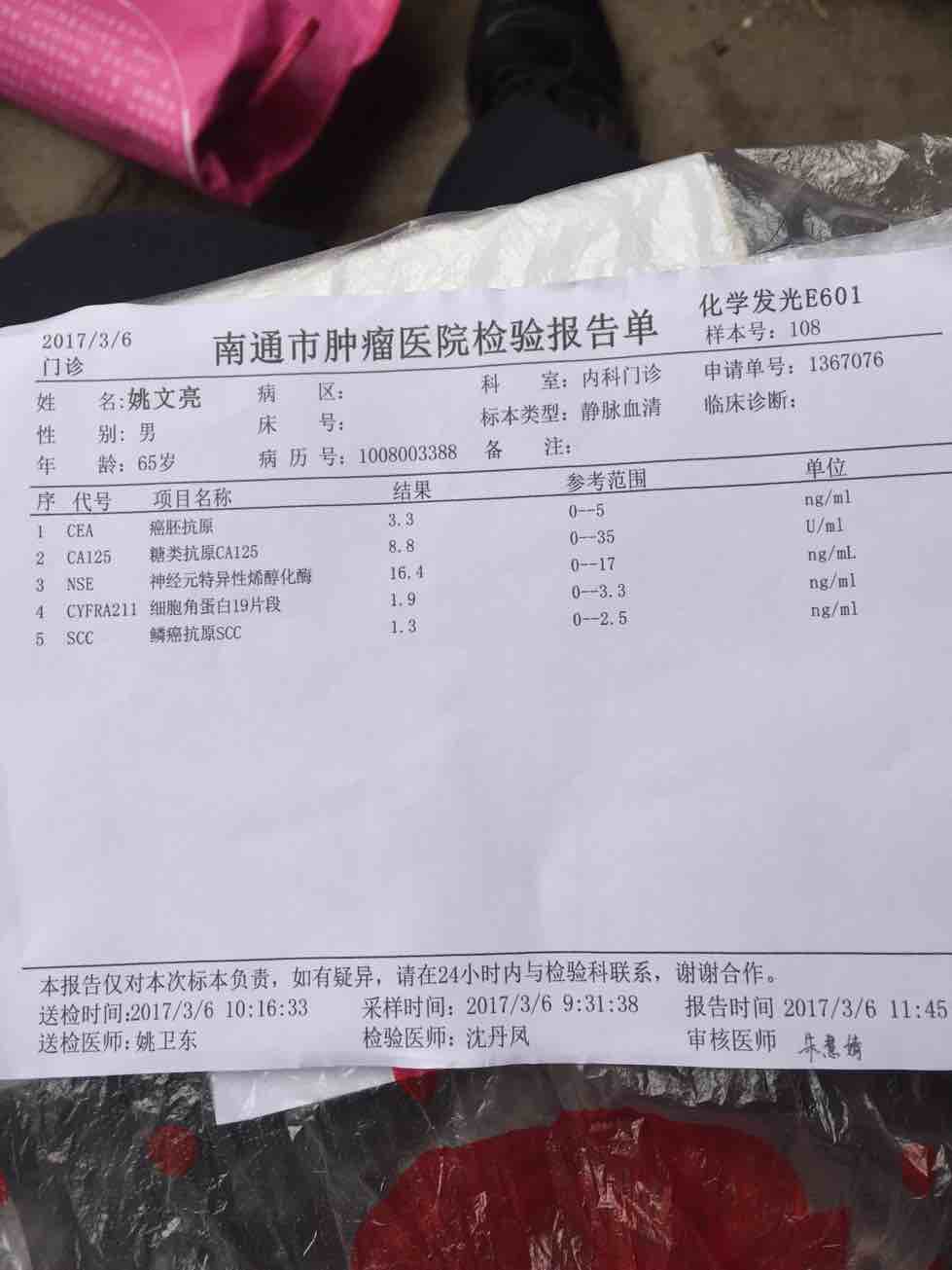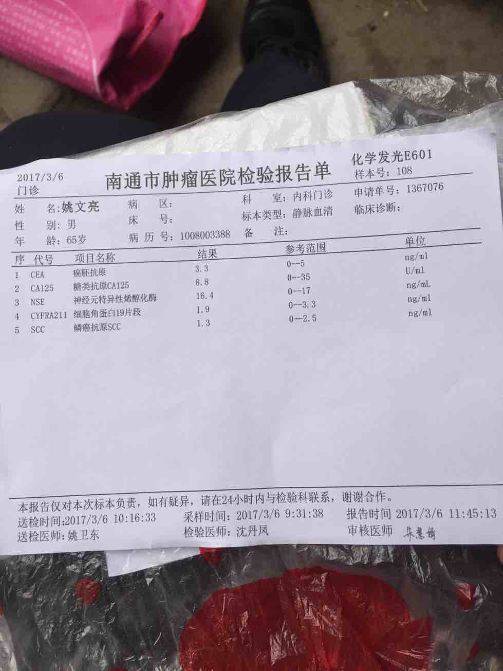 检验报告单中各项指标都在合格范围,手术和化疗的效果还算可以。