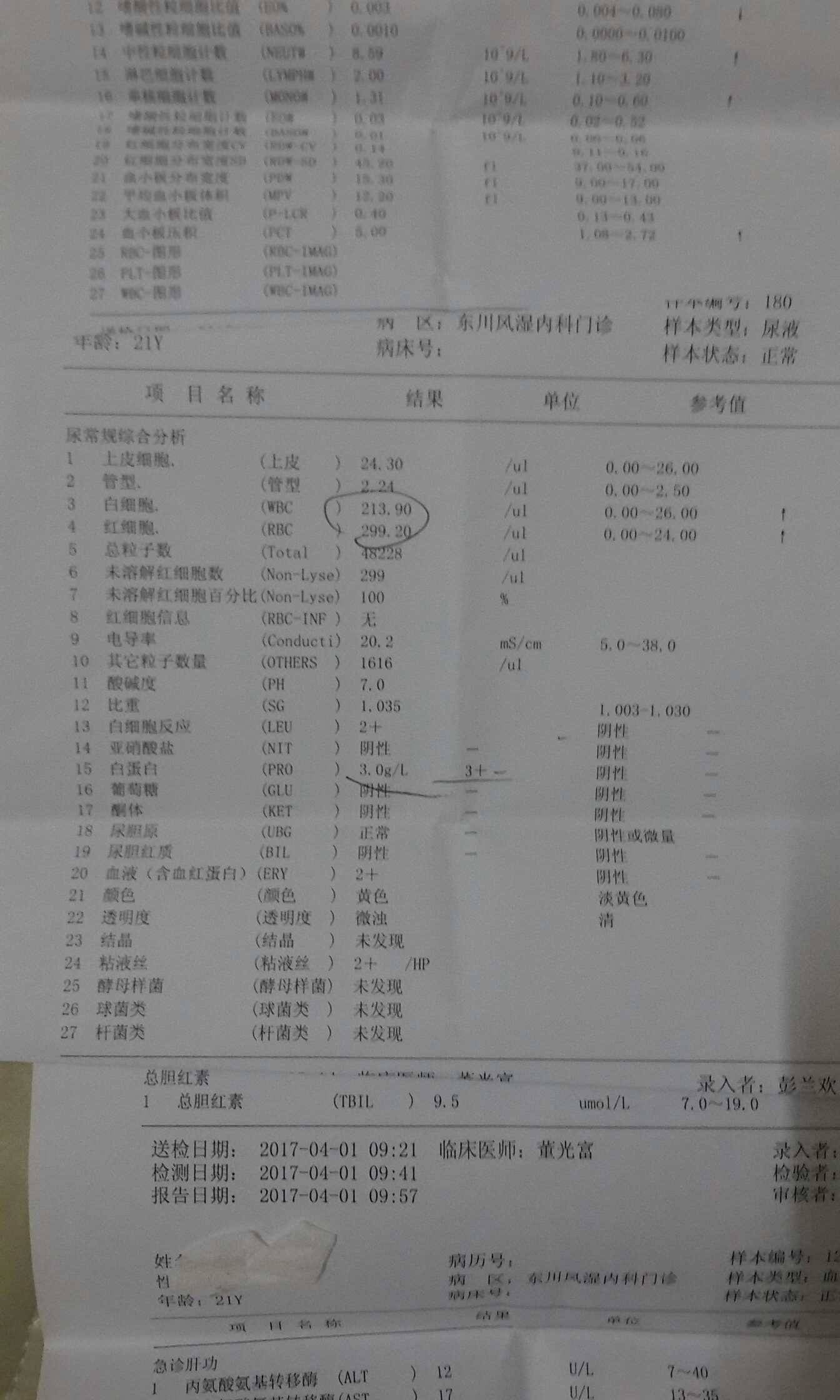 昨天去检查了,虽然还有好多不正常的指标,可是医生说比上个月好了一点,嘻嘻,挺开心滴,我跟医生说,我这个月没来月经和眼睛看东西模糊,他说可能是突然加激素引起的,叫我别担心,再吃一个月药看看情况,就是现在尿蛋白还是3 ,他说要吃3个月才知道肾有没有好?呜呜,拿了赛可平一个月的药就要1200,这个月拿药检查就花了家里人2100,去去回回花了2600,伤不起啊,