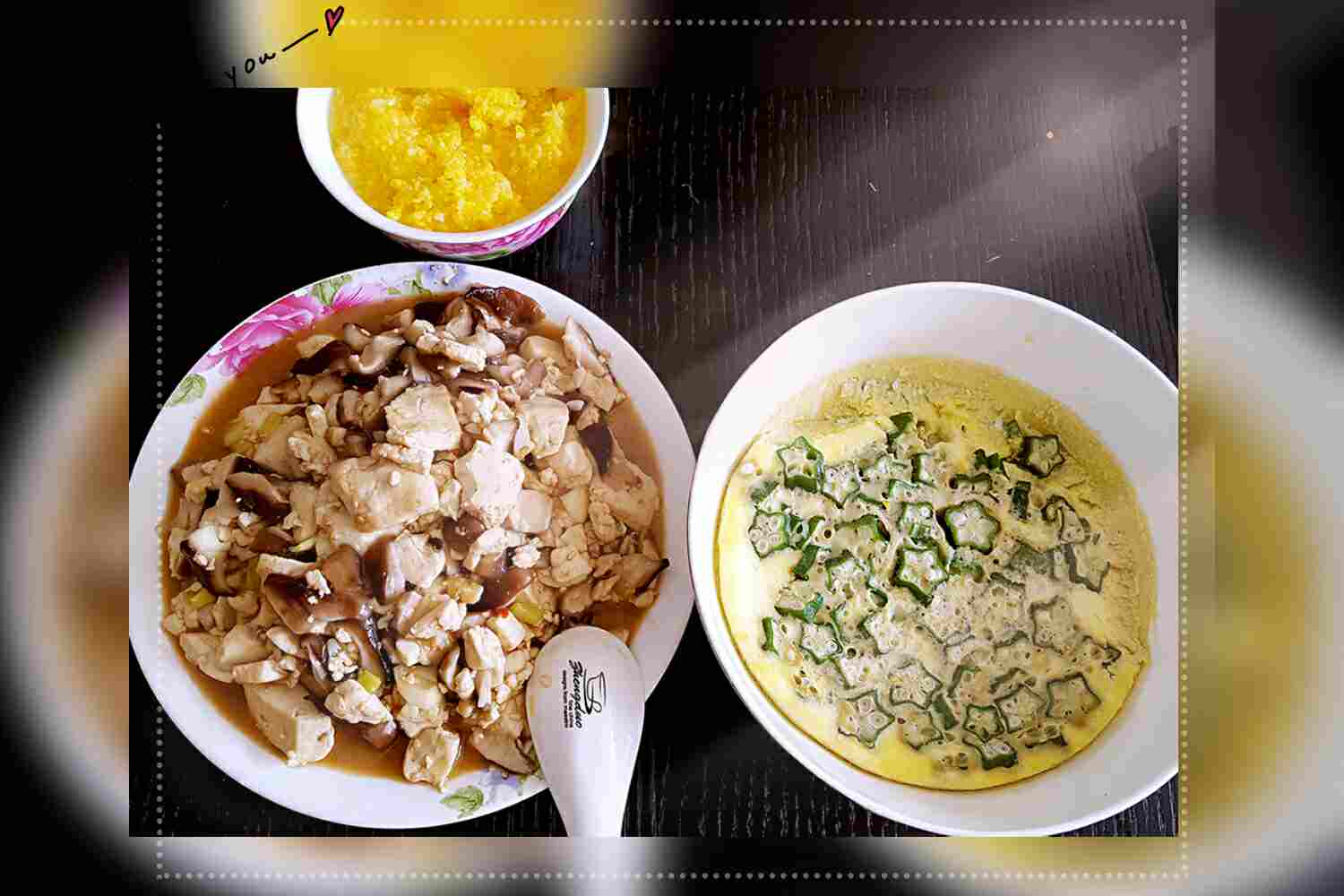 那个菜是秋葵蒸蛋吗?秋葵生的放在鸡蛋里?