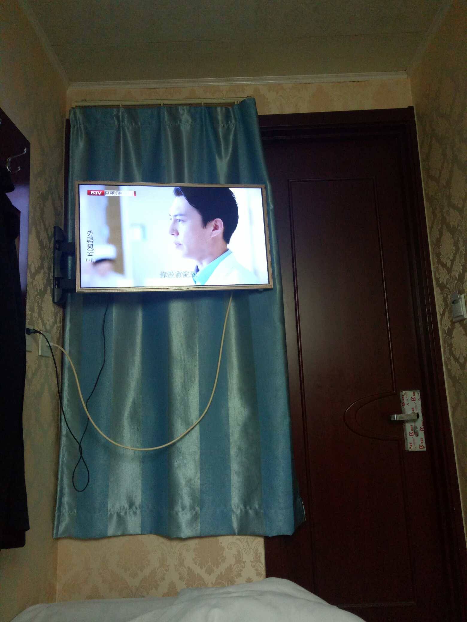 这是在宾馆啊?电视怎么按到窗户上啊?
