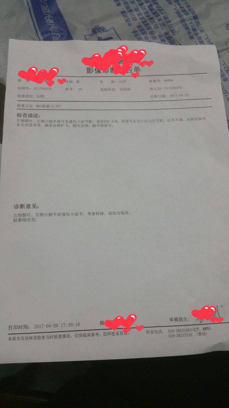 我父亲小细胞脑转,头晕,记忆力差。现在是住院脑部放疗,还有输甘露醇