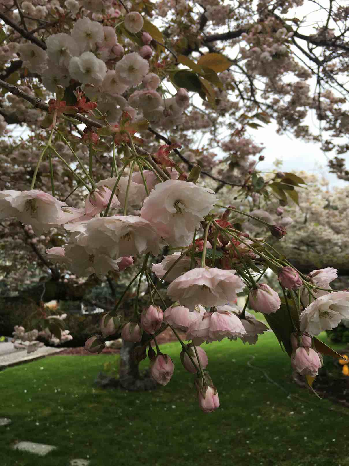 昨天抽血复查,结果出来就打针,一切都很好,打了内分泌治疗针,朋友给我做了早餐,在窗台突然发现樱花在屋檐下好美,就把自己的假发戴上和樱花合影。