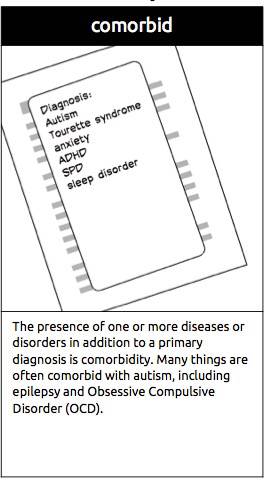 在原有诊断疾病基础上一种或多种疾病或失调叫并发症。许多东西和自闭症并发,包括癫痫和肥胖强制失调。