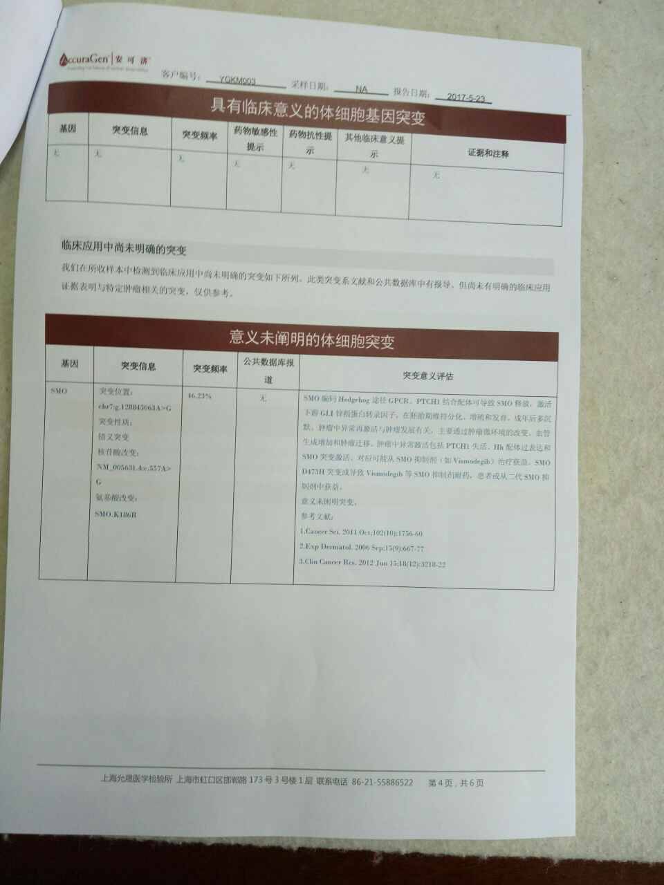 我哥经嘉兴一院确诊肺癌,不能手术,医生建议送上海做基因检测,5月3日抽血交7000元,并承诺10个工作日出报告,但一直拖延时间,经多次催讨,今天(24日)给一个报告。
