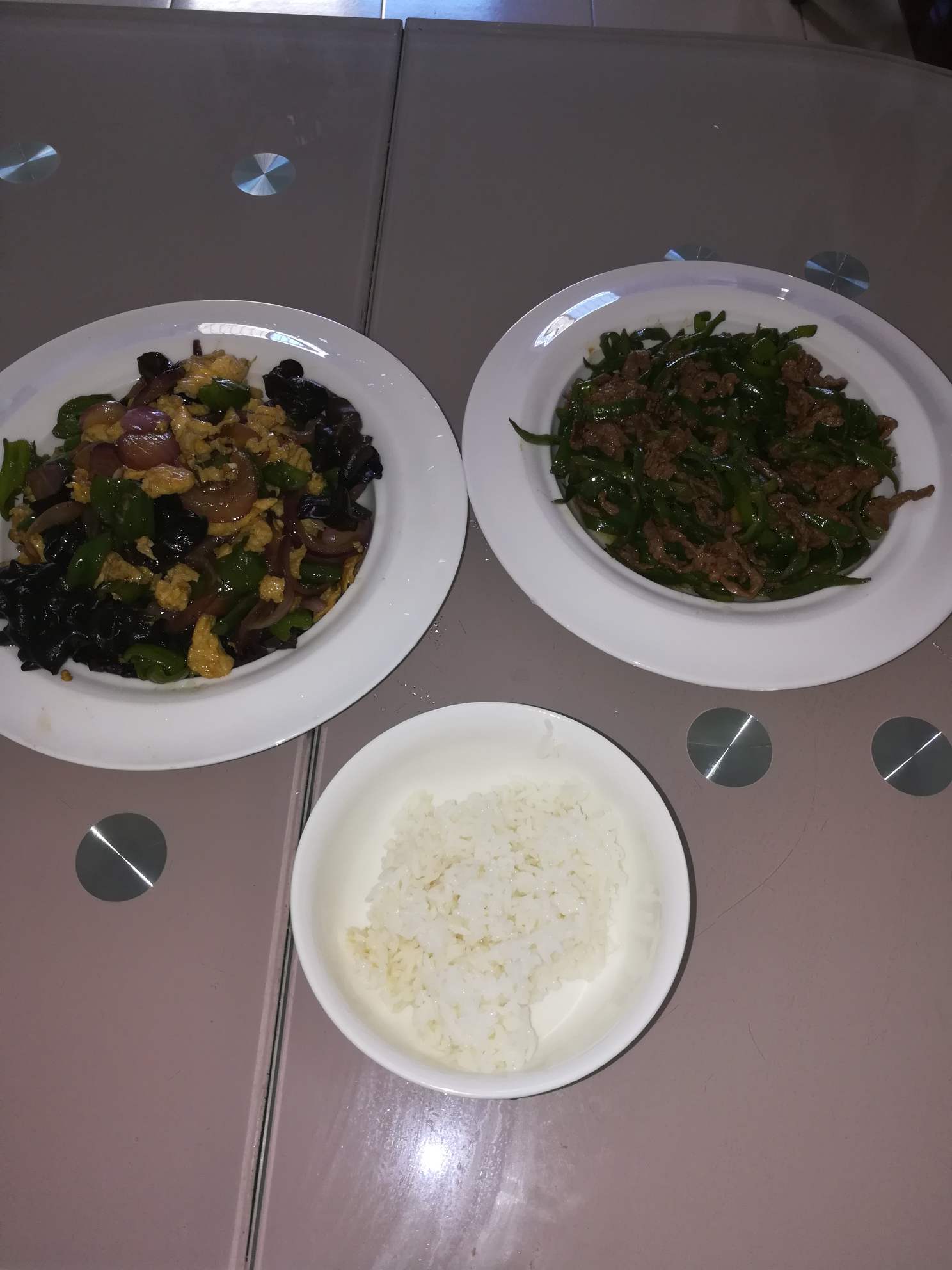 这碗盛的米饭也就算小半碗吧,菜很诱人多吃点儿吧
