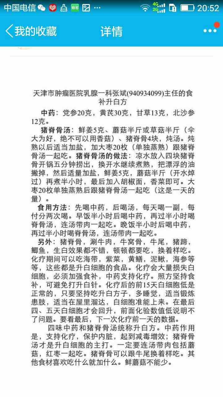 这是我乳腺癌朋友正在用的升白方。