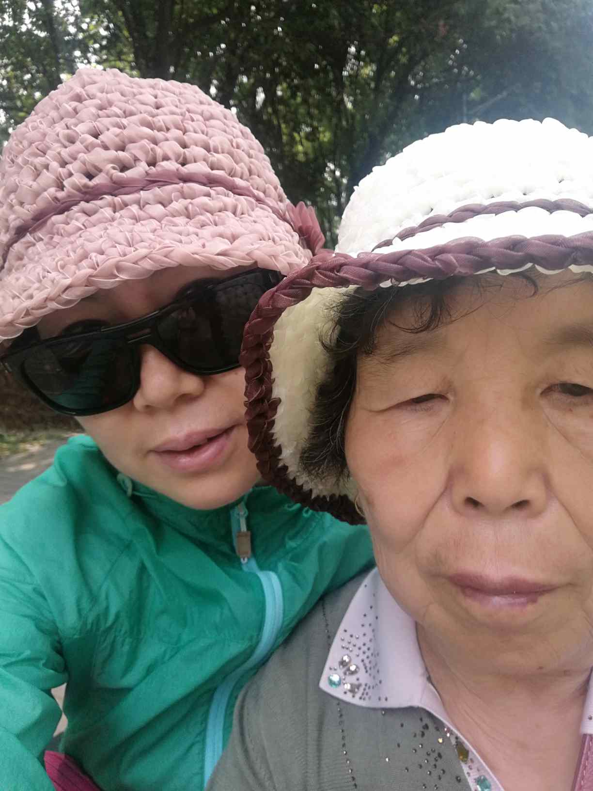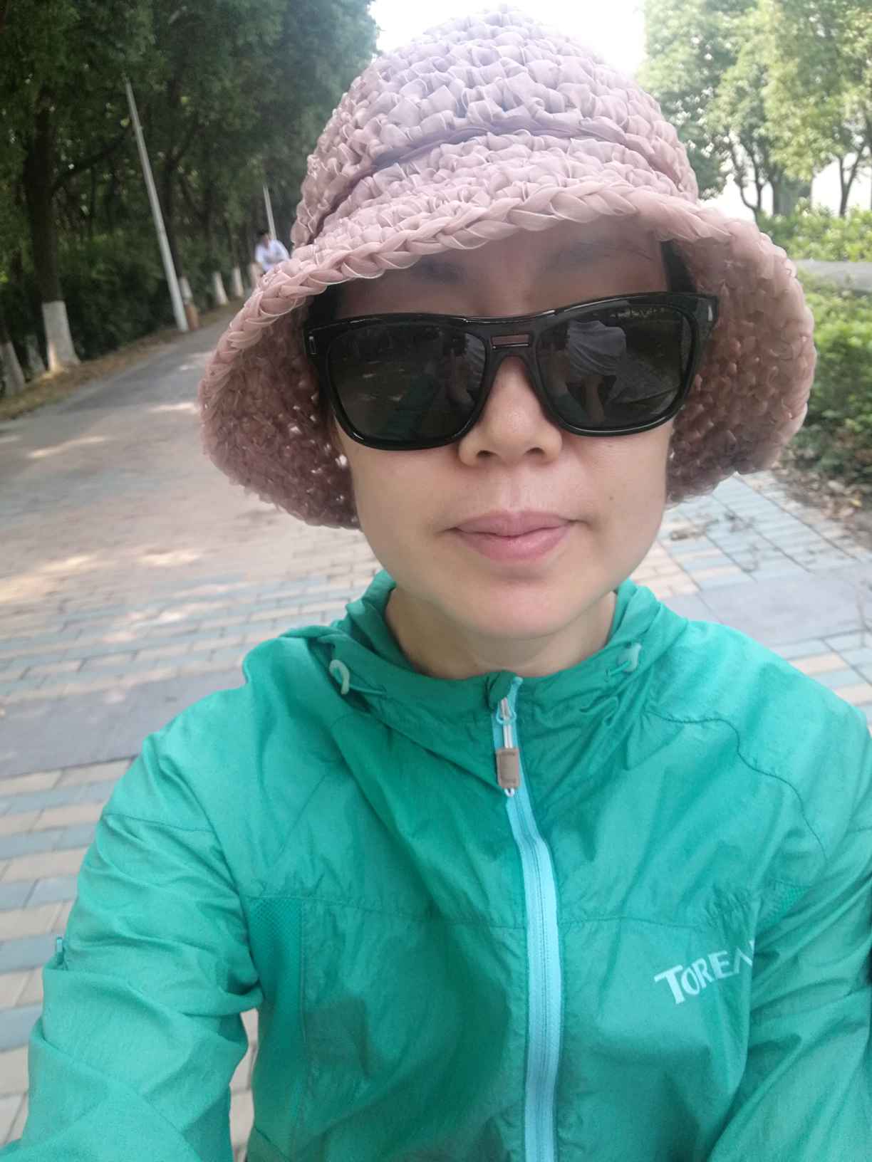 趁着早晨凉快,又没事,叫上爸妈去江边转转;骑着三轮电动车,我们三口在江边的柏油小路上穿行,因为不摊休息,路上很少见到溜达的人们,我们在茂密的树荫下不紧不慢地溜达着,享受着河道的穿堂风,还有骑起电动车带来的溜溜风,真的很遐逸…这时我提议来个自拍,老妈和我带上老爸的墨镜来张搞怪照,