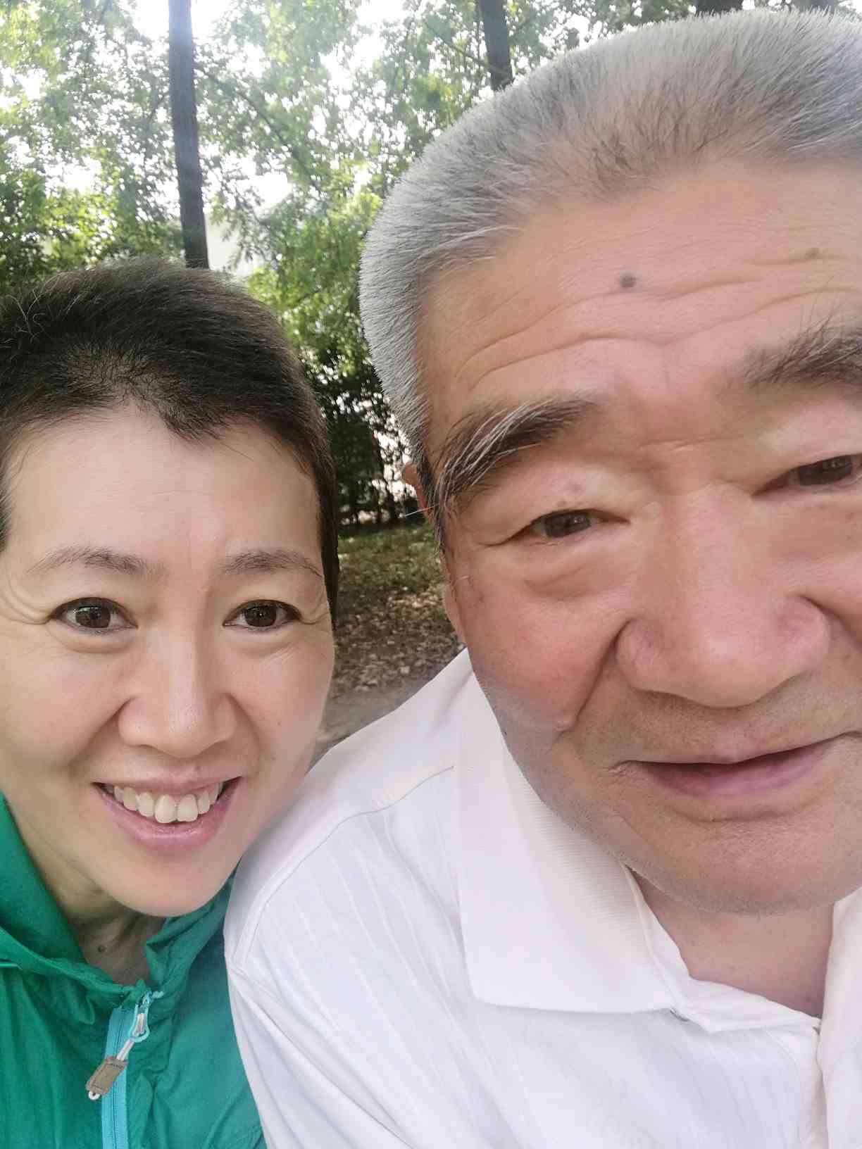 再跟老爸来张合影,这两年越发见老的爸爸,最近两年表情也越发木讷,我说,爸~爸笑笑,他竟然光是瞪眼,再把眼瞪大,我说,叫你笑,你咋老瞪眼,…呵呵,终于把老爸引笑了!呵呵😜