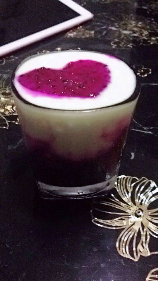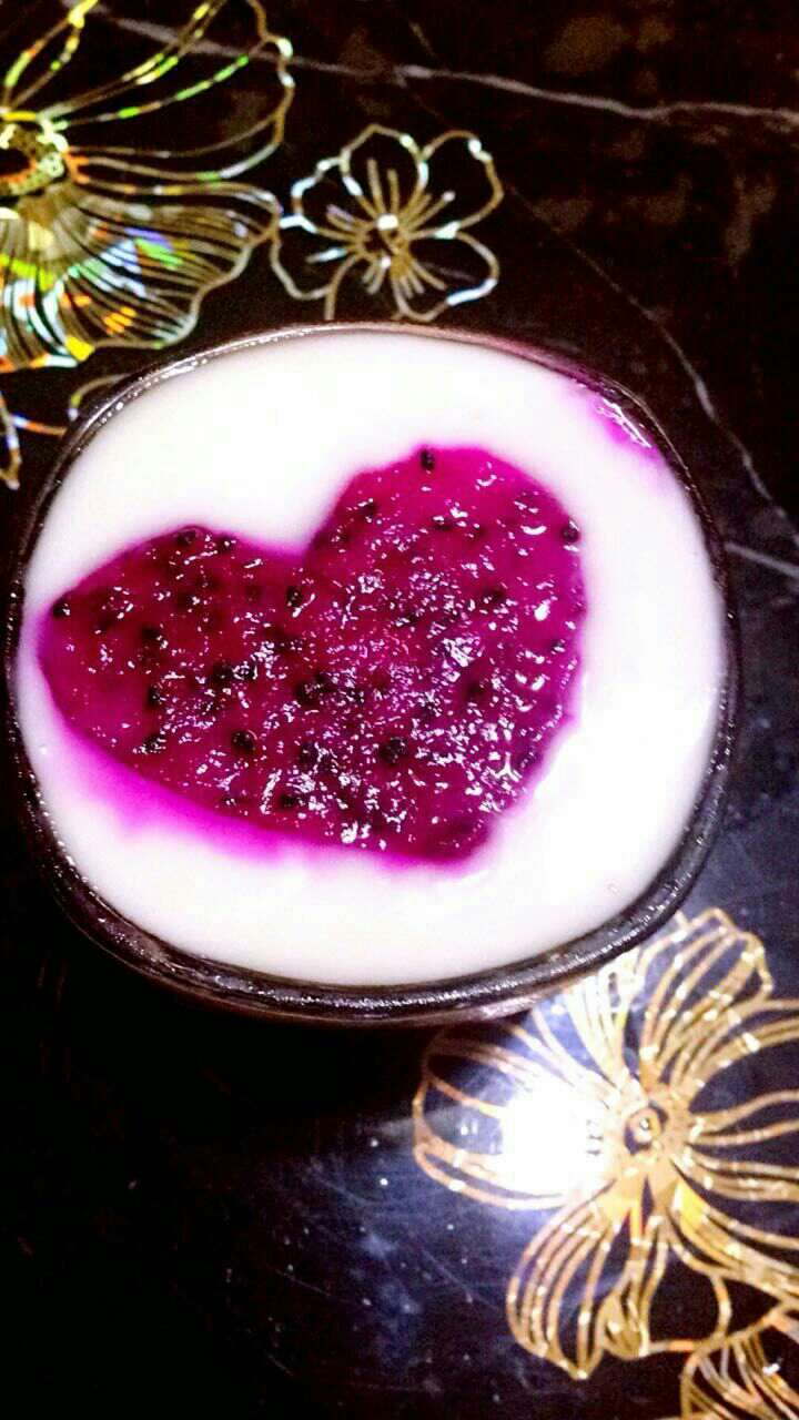 郭先生又用自己做的酸奶做了杯火龙果酸奶