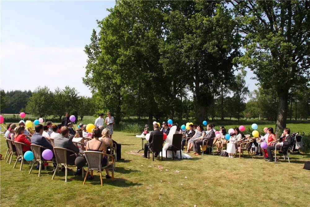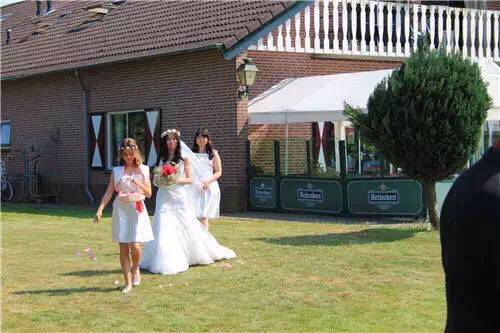 我一向很喜欢婚礼设计,自己的婚礼当然自己做主,我们两个都不喜欢太过奢华,喜欢简单的格调。结婚的地点选在了森林中的一座农场,农场有自己的园地和饭店。就在那座小农场的外面,邀请了五十位亲人好友,周五的下午,我们两个人结婚了。婚礼过后,我和丈夫乘着皇家马车,身后的亲友们上了马匹拉的“火车”,在森林里穿行了一圈。晚上请来了DJ.为我们调动气氛,我和丈夫的开场舞之后,大家就一起到舞池里跳舞,直到深夜(我实在熬不住 早早去睡了)。婚礼主持人,摄影师,搬运工,装饰现场的人,包括厨师(吃的烧烤),都是我们的朋友们来帮的忙。有了他们,才让我们在仅有的预算下把婚礼办得更好。