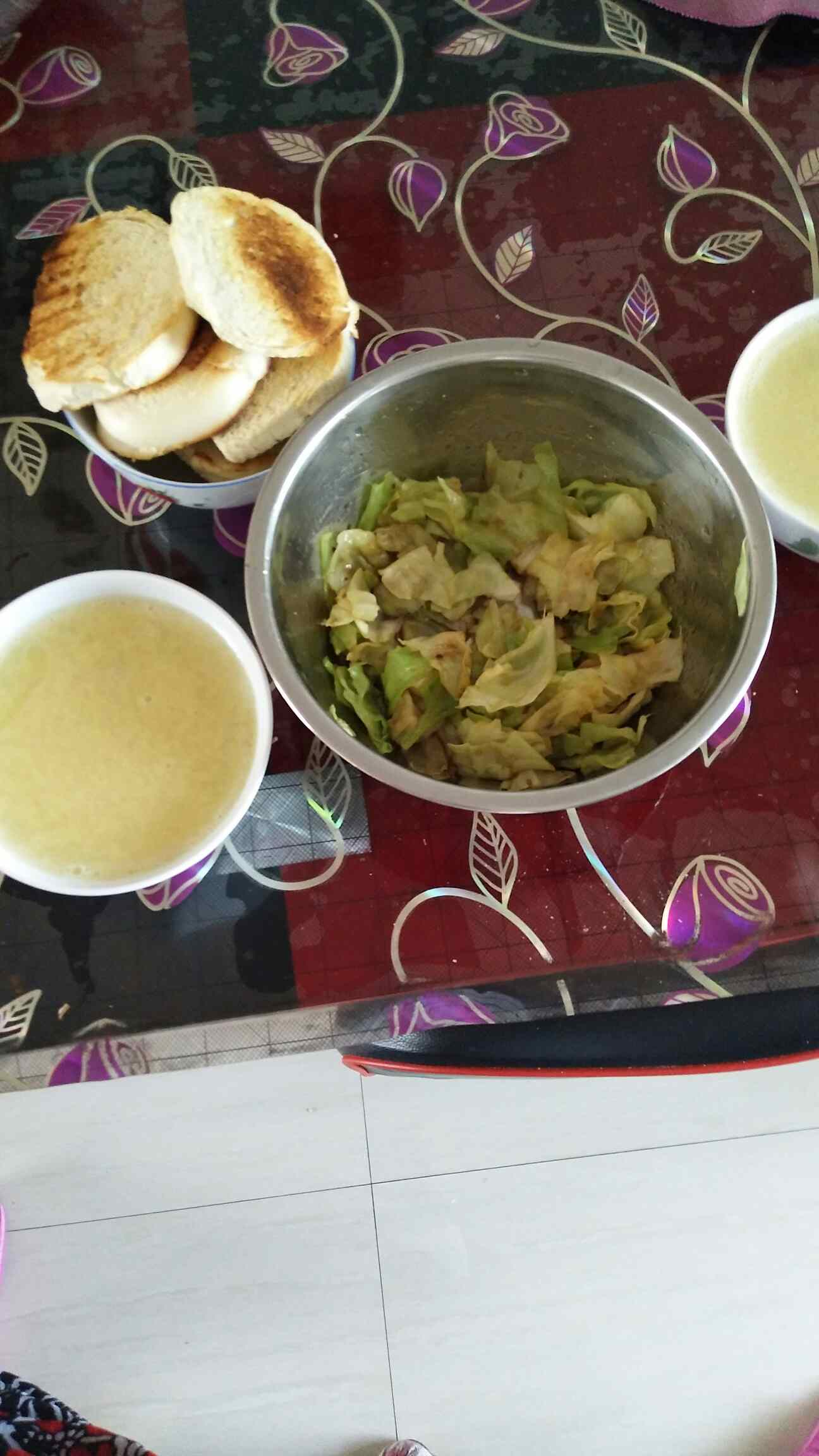 老妈每天七点半就把早餐做好了,我俩天天如此,每天早上都是吃这些,我俩吃榨米糊跟馒头片有半年了,原来我的胃吃东西总是反酸,老妈的胃也不怎么好,我俩就天天坚持吃这些,现在我的胃不怎么反酸了,老妈也说现在觉得她的胃病好了,真的很养胃,老公每次休息回来(老公在外地工作)也跟着吃这些,他看到就愁