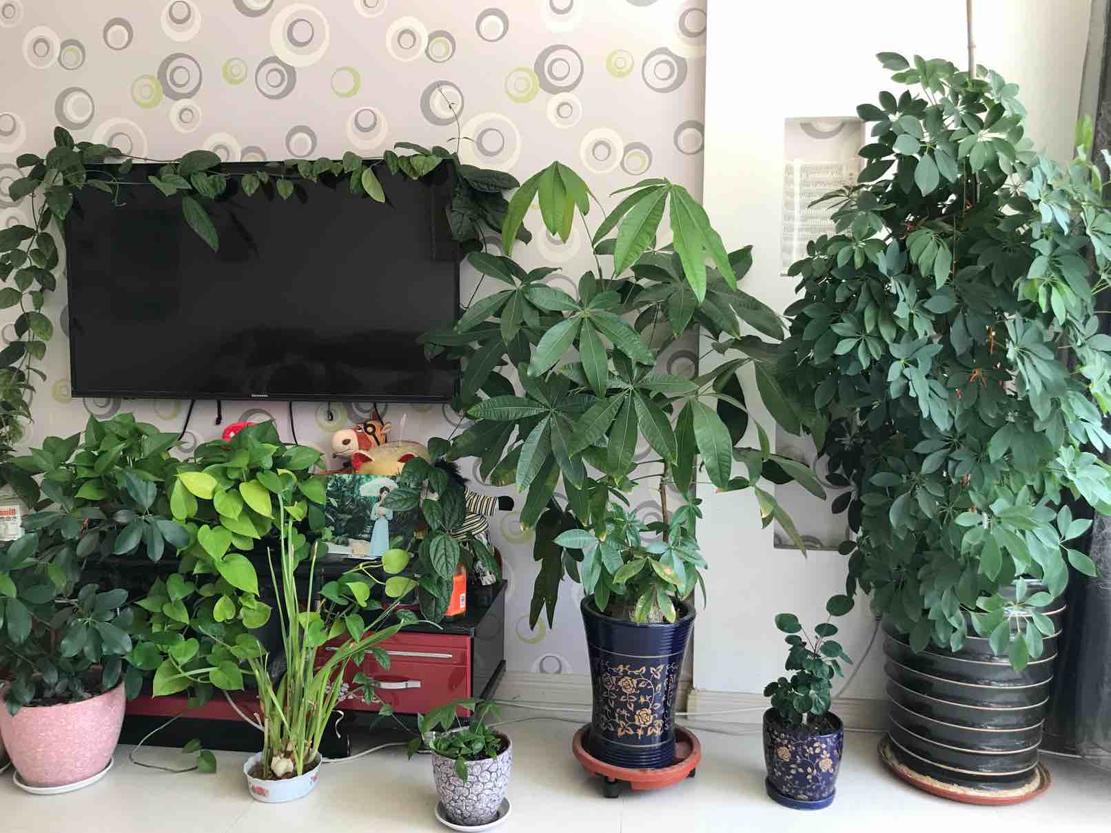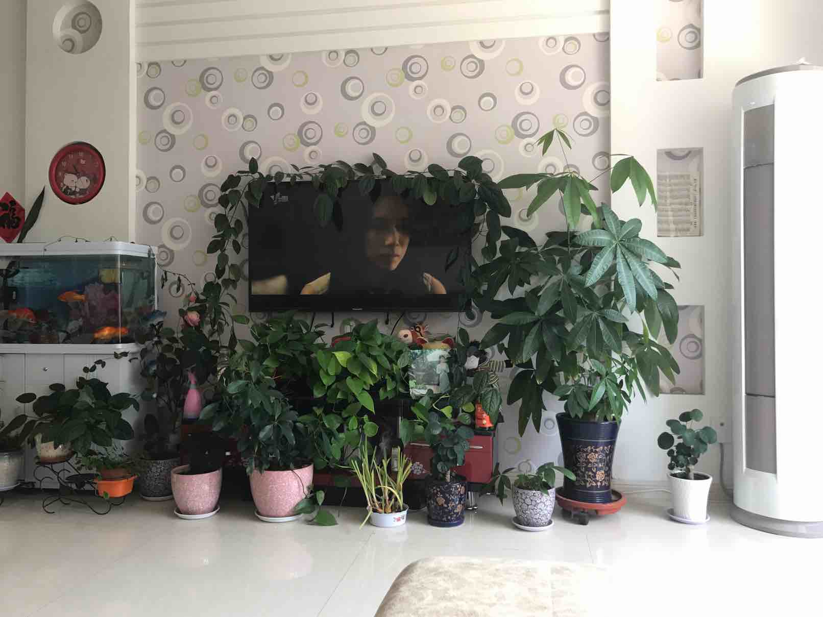 盆栽都要挡着电视了