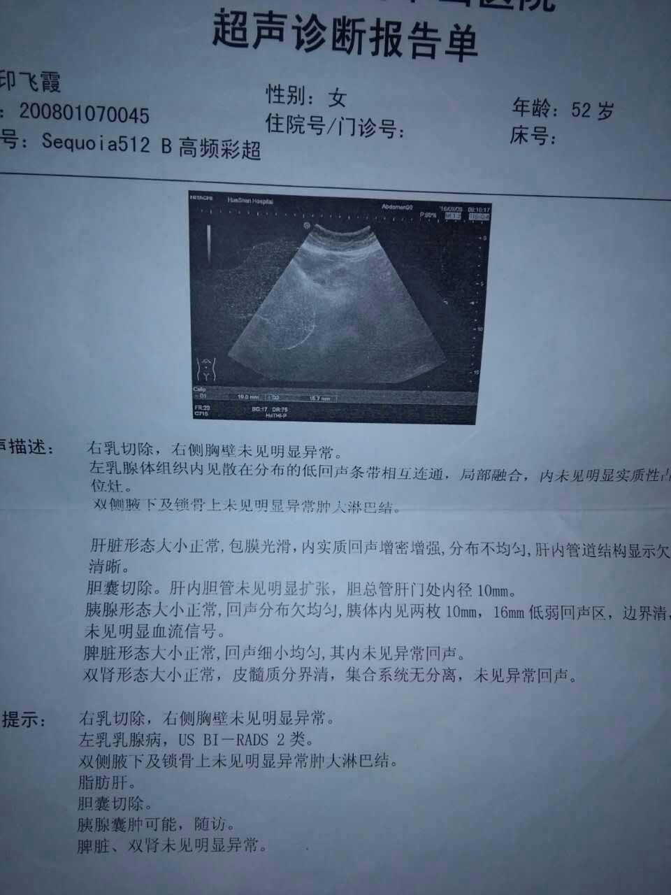 糖姐姐,你朋友没和你说清楚,她是手术治疗乳腺癌的,手术摘除胆囊,现在中药调理,这次复查情况稳定。你发的几张报告单里显示了这些内容