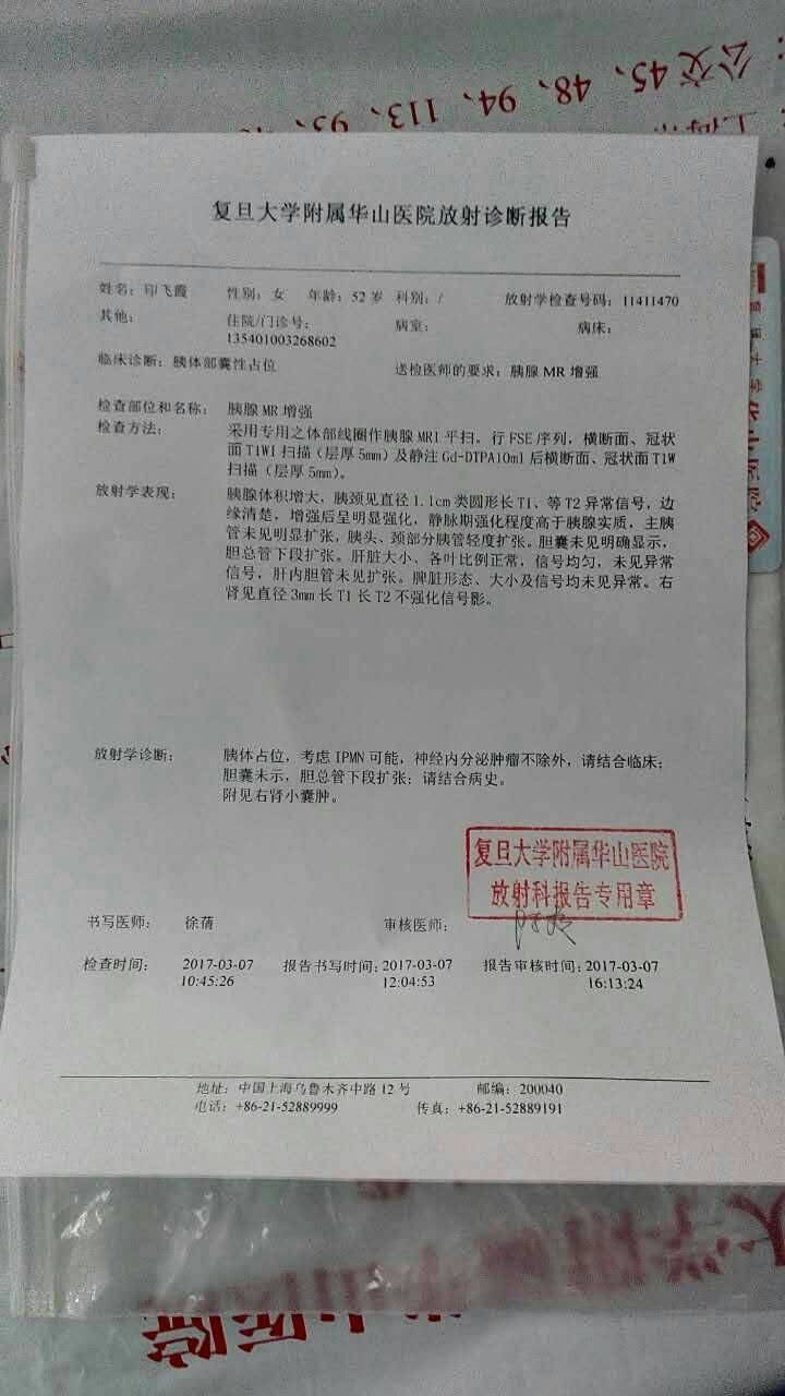 昨天我的一个朋友发了她刚刚复查的病例报告给我看了很惊讶,也很后悔,早知道那个中药有这么好我也不开刀了,她昨天拿了她的报告让上海华山医院的很多专家看了都感觉以前的检查是误诊了,只有她自己知道是她吃的一味中药起了效果,竟然真的可以把肿瘤吃了慢慢缩小到消失,明明是我先知道的,但是我却选择开刀
