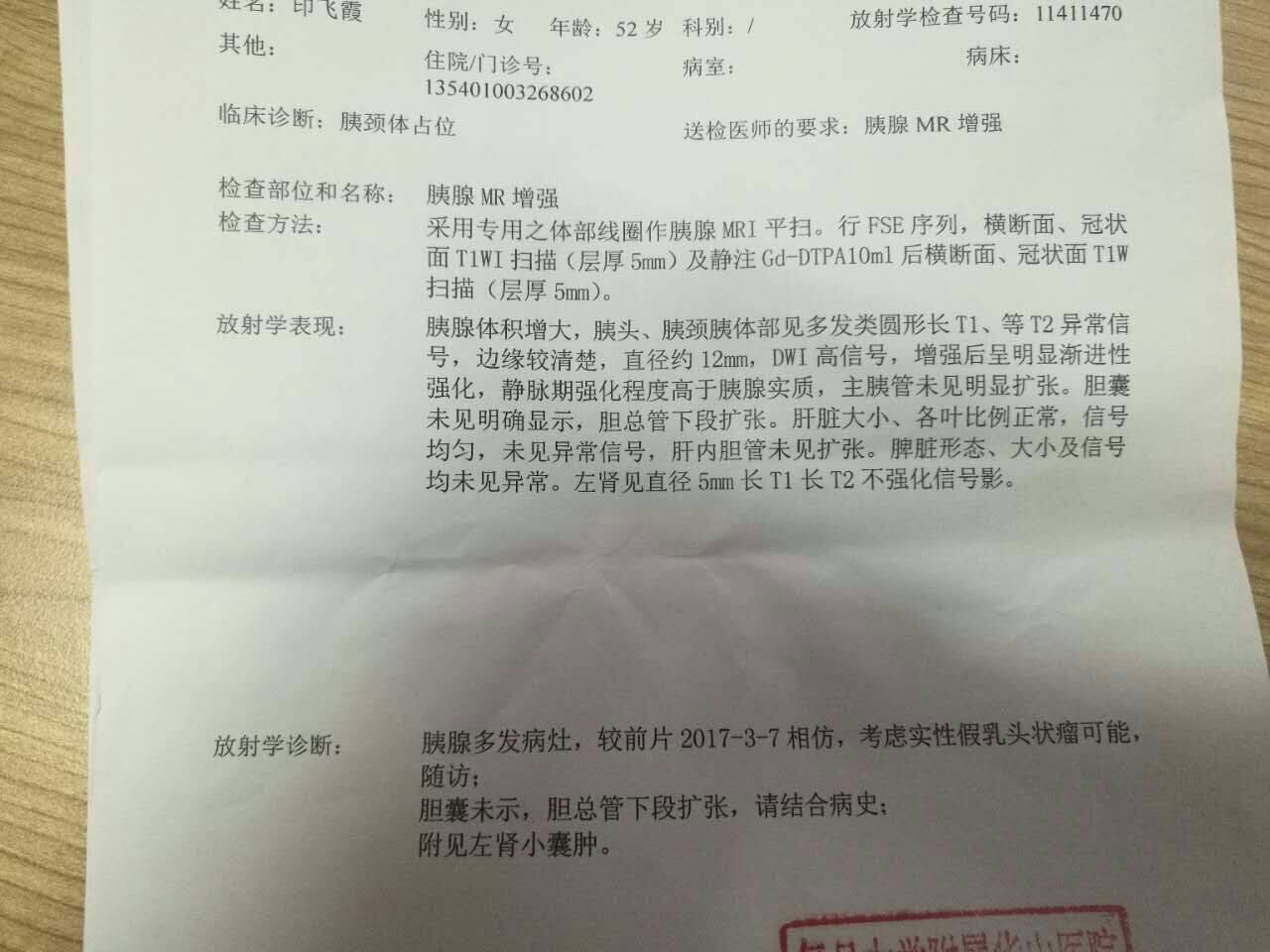 3.据她前面b超跟后面ct对比,肿块也就差不多一样大,因为两种仪器不同,影像学切面不一样,操作医生不同,手法不同,稍微一点误差都正常,但是三张胰腺上肿块差不多大,根本没得缩小,甚至消失这一说法