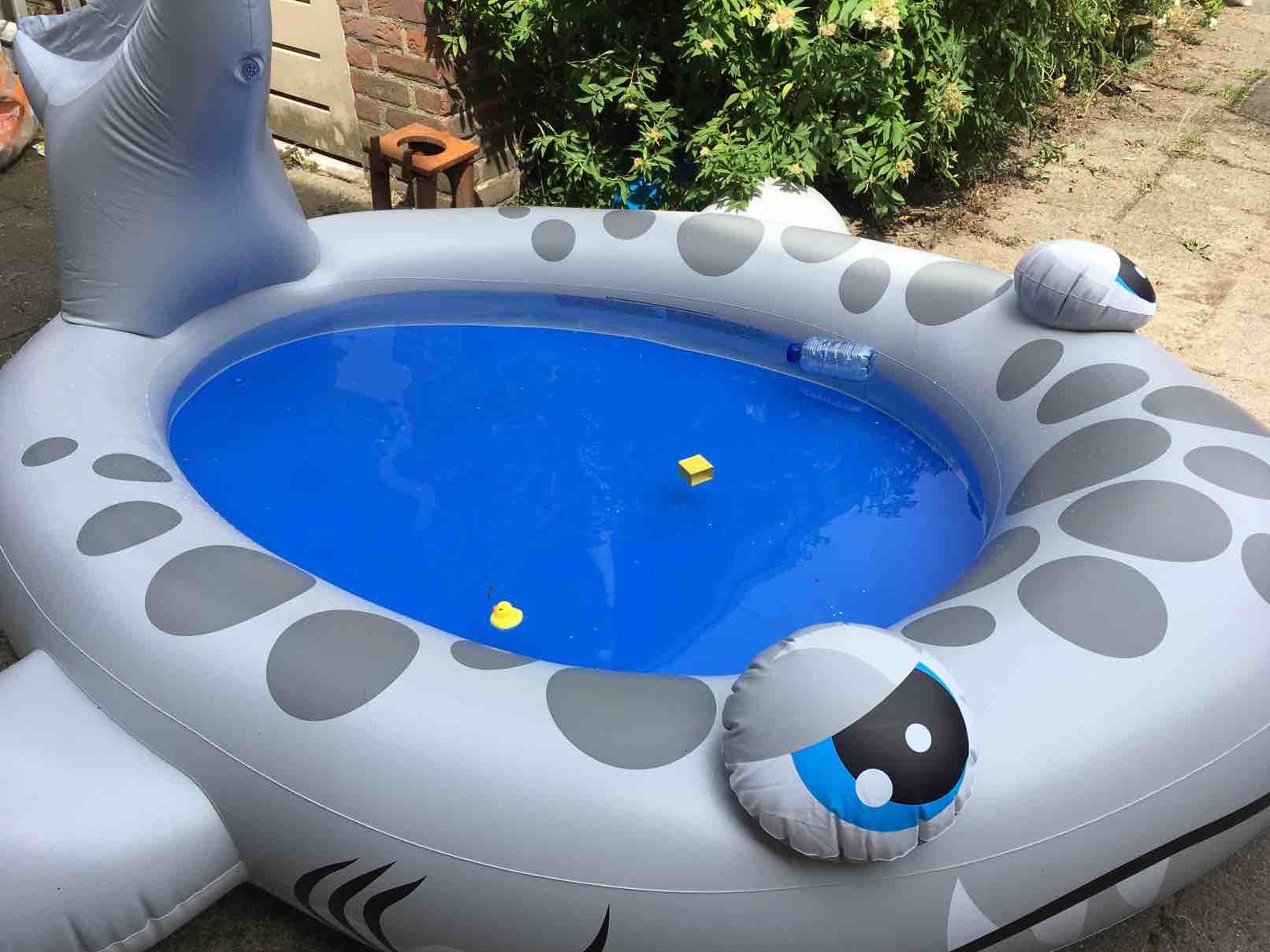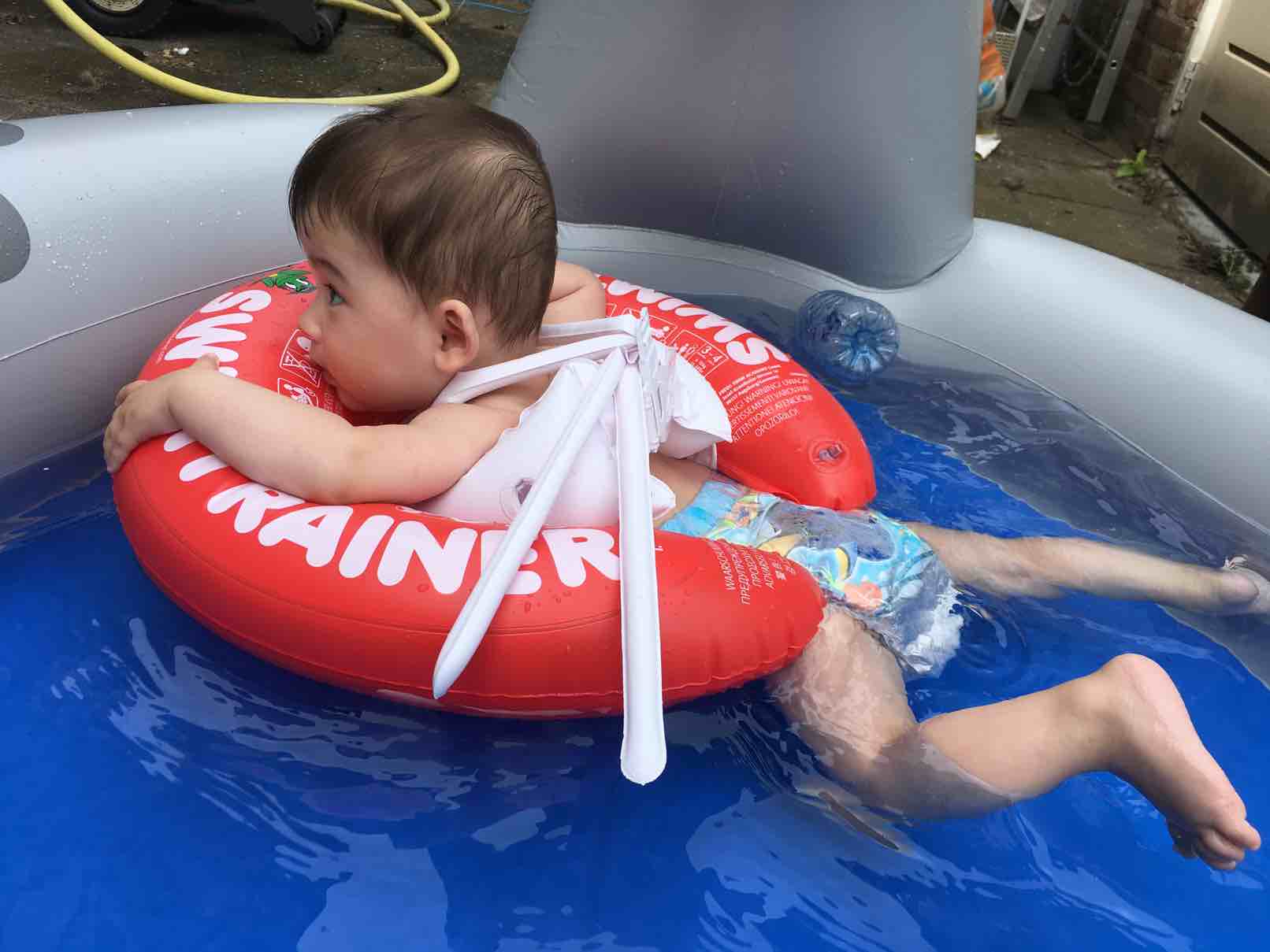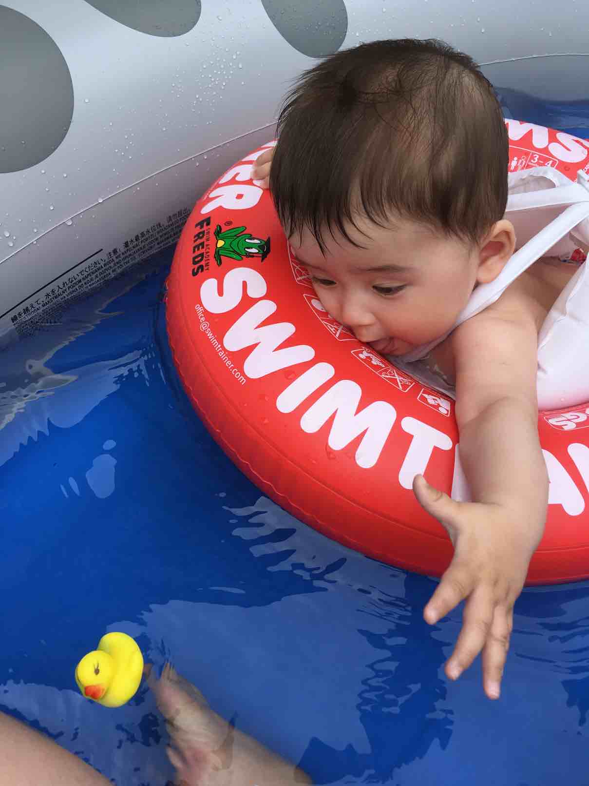 每次去游泳馆游泳都好贵 好处是可以和其他小奶娃们一起玩儿 还有教练教。天气太热还是给宝宝买了一个充气的小小水池来玩儿。上午放好水放在太阳底下晒,下午水被晒热了太阳也已经到另一边了,院子没有了太阳就和宝宝出来玩儿水了。