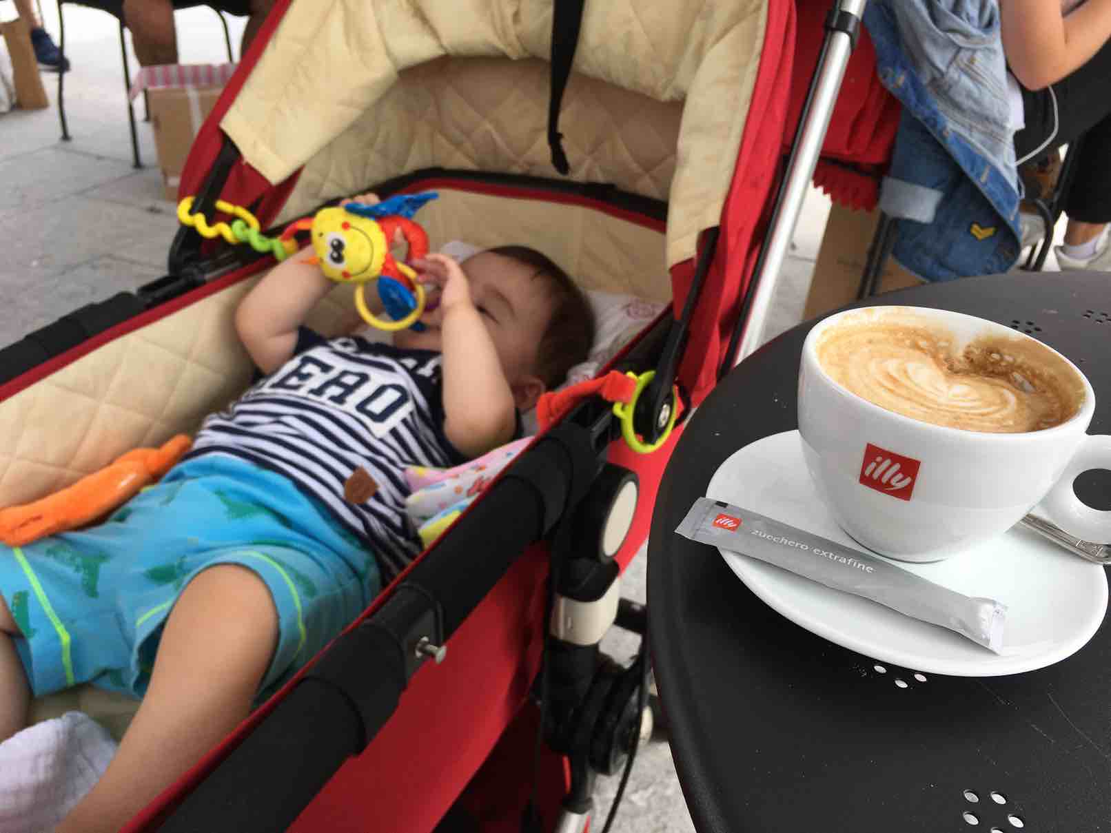 一个人喝咖啡、一个人喂奶,平时逛街丈夫是我的搬运工,现在变成了婴儿车(如图🙃)。