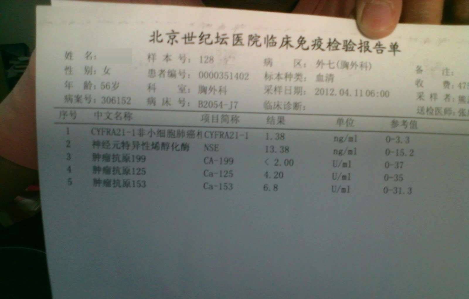 瘤标物:CEA: 125 199 153 cyfra211 NSE 这几项都高。病历在协和没有取出来。