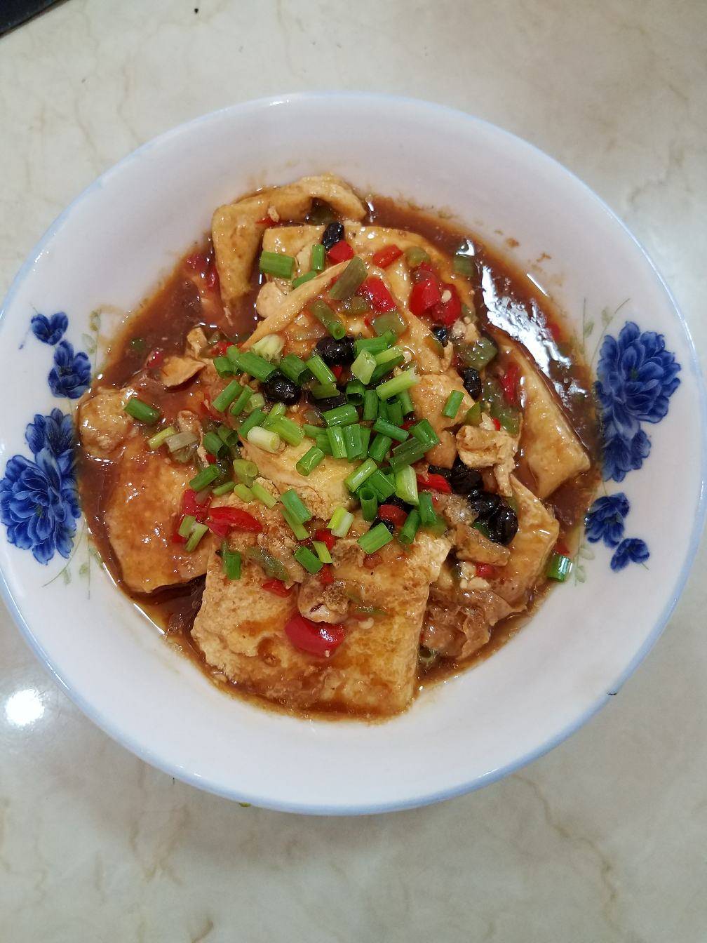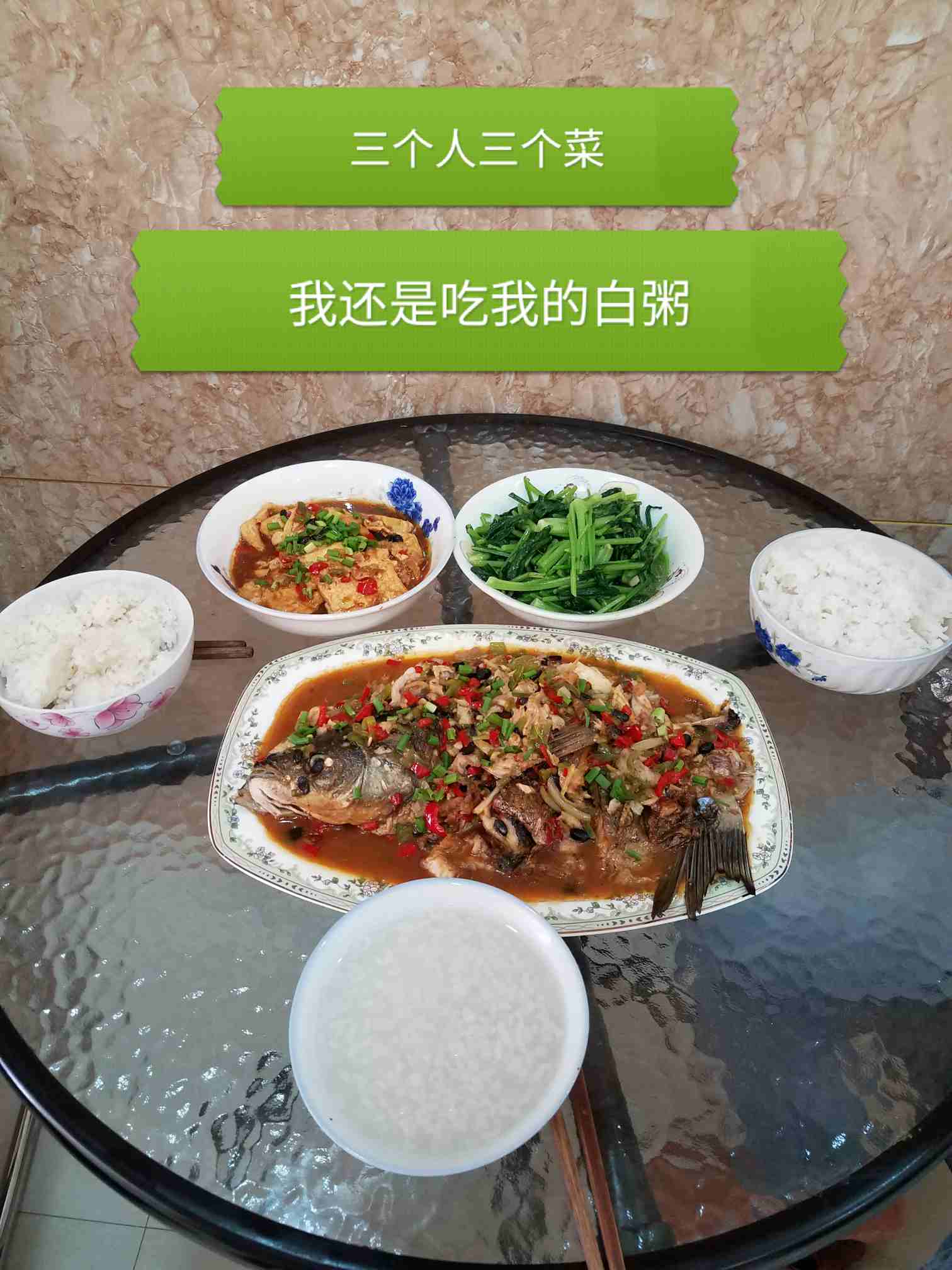 今天的这两个菜是我和老公一起分工合作做的,红烧鱼是他做的,豆腐是我做😁😁😁