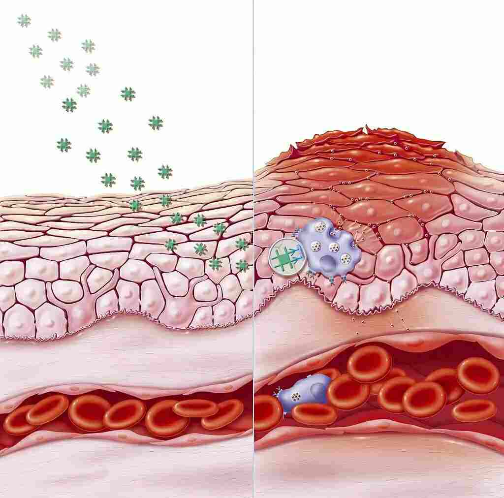 治疗部位的皮肤敏感,看上去发红、起皱。几周后,病人的皮肤由于放疗变得干燥。病人应把这些症状告诉医生,医生会提出建议来消除你们的不适。放疗结束几周后,多数皮肤反应会消除。在某些情况下,接受放疗的皮肤会比以前稍黑。病人应小心对待自己的皮肤,以下是一些建议: