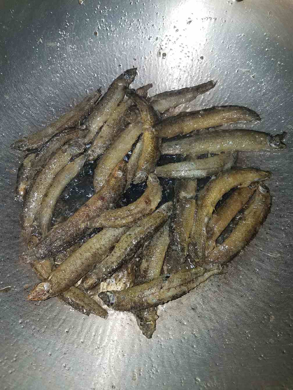 3:洗干净刚才那个黏黏的锅,再热油,把泥鳅倒下去 加点盐,煎到泥鳅两面金黄色,再装出待用。