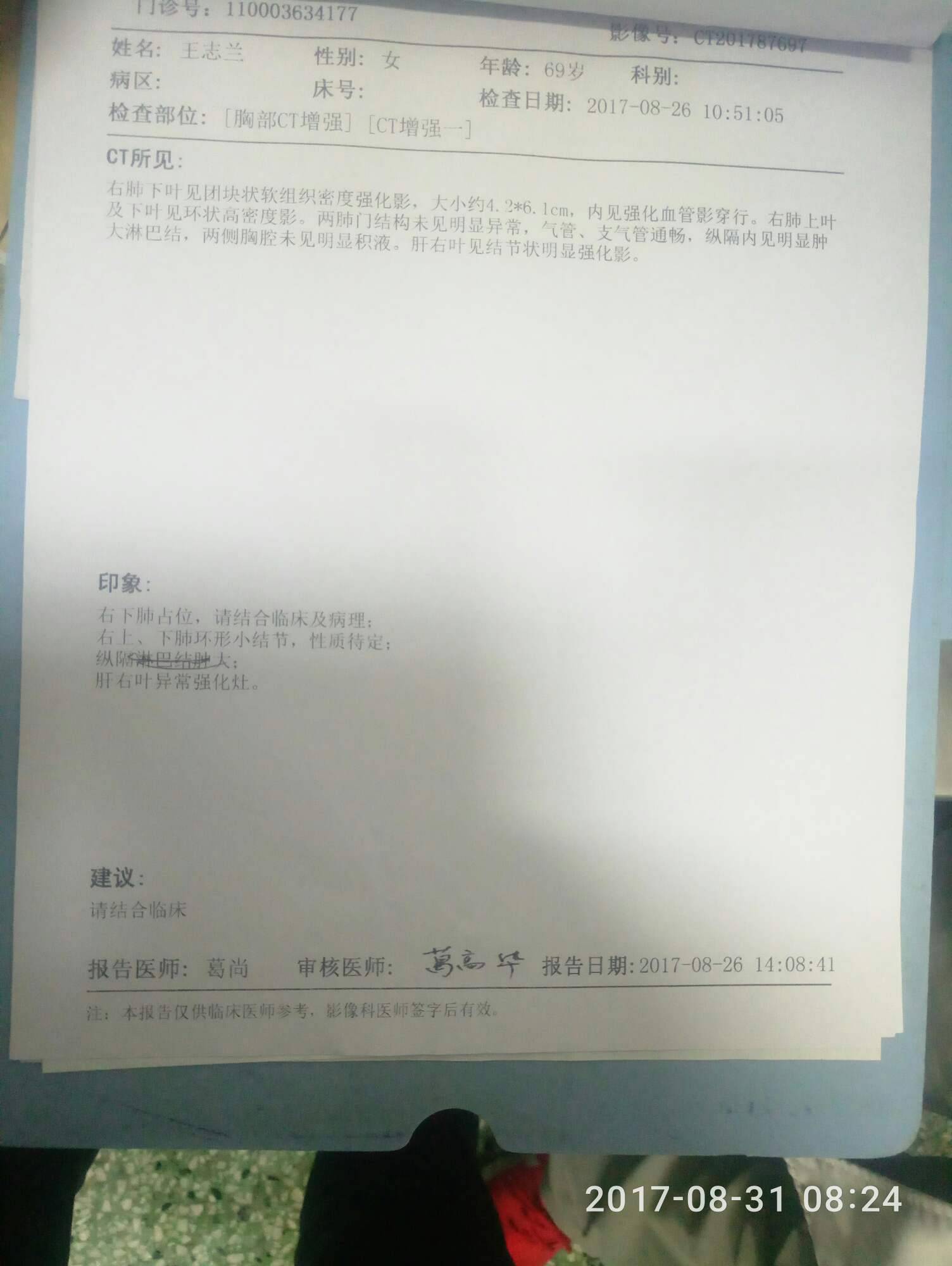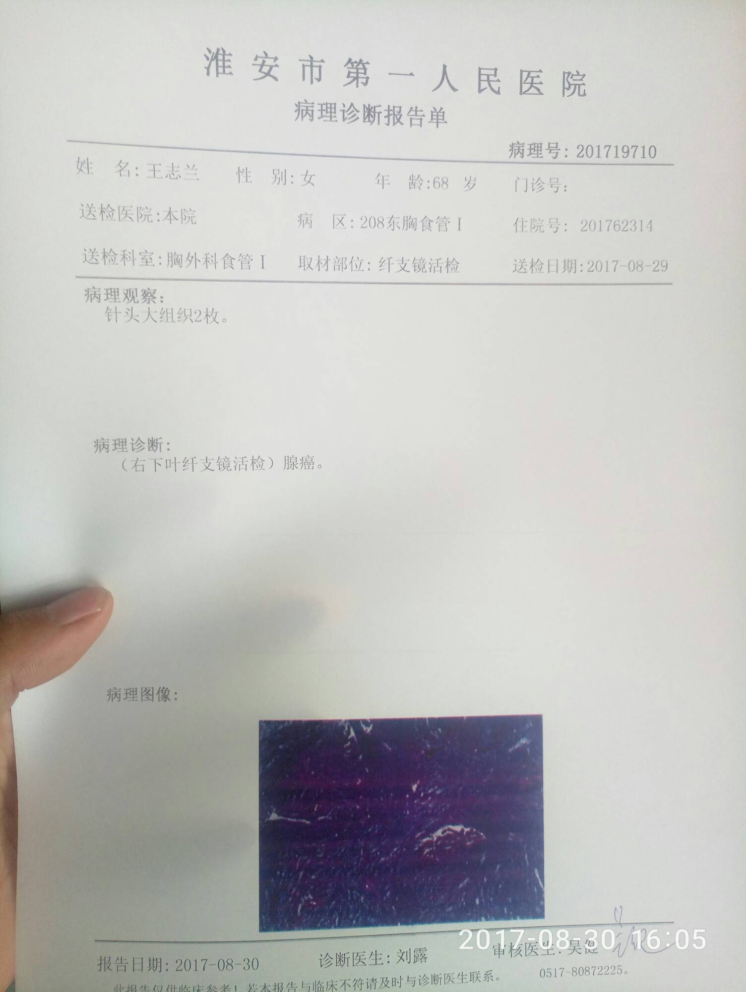 妈妈69岁 在家农村也没干什么事情 突然左腿不能走了 一开始都不认为骨折了 经过拍片检查 股骨头骨折 后做cd 发现肺部有问题 到市医院检查 做气管镜发现是腺癌