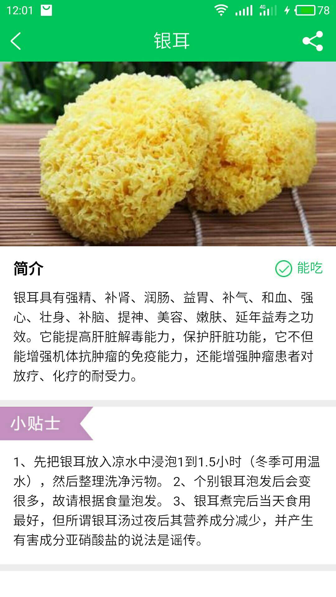 今天煮了莲子花生白木耳甜汤,一直以为白木耳不能吃,煮的有点多,老公一人肯定吃不完,看了下觅健饮食禁忌发现可以吃