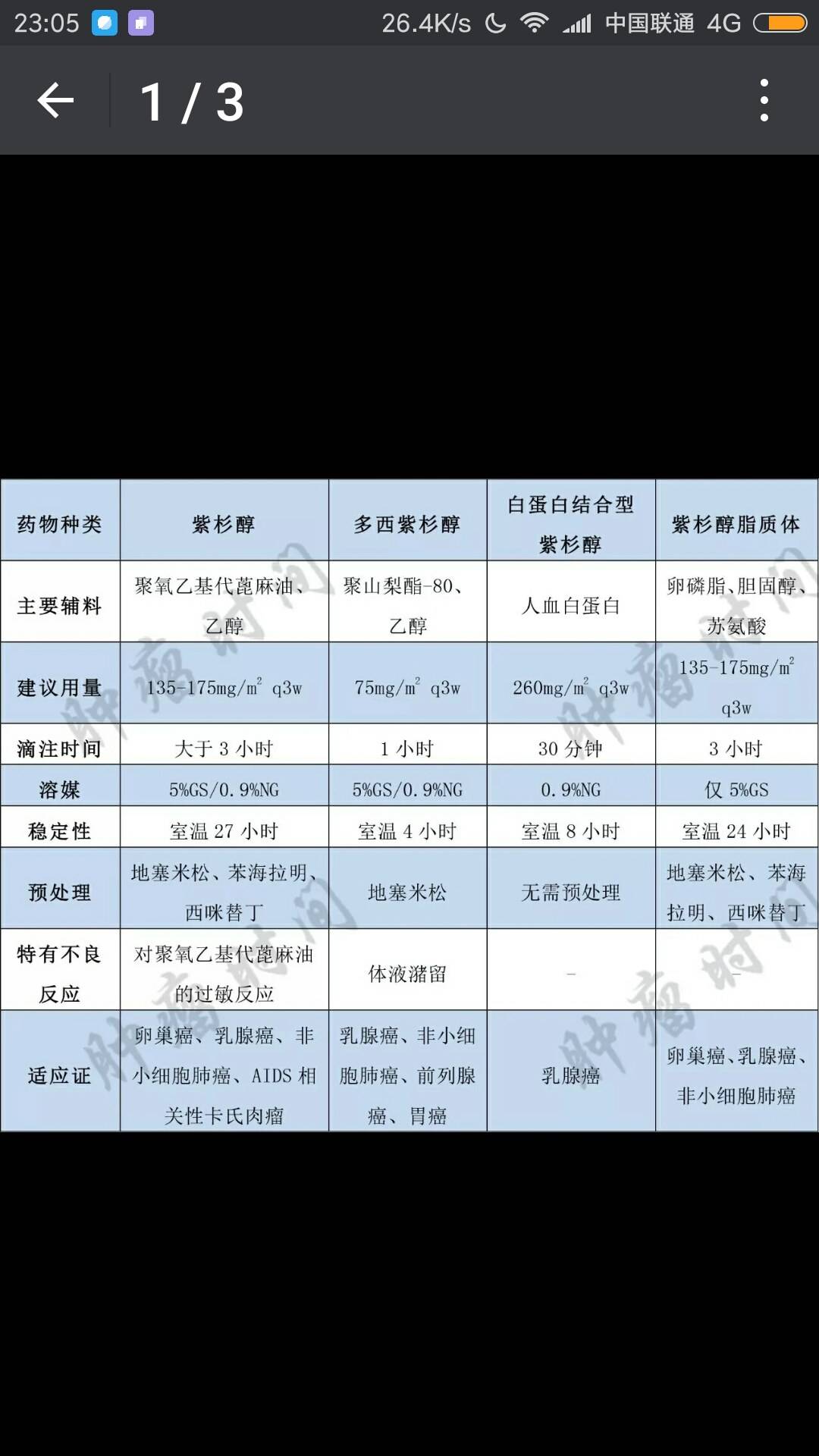 白蛋白结合型紫杉醇:无须加入助溶剂聚氧乙基代蓖麻油,能安全提高紫杉醇的剂量,缩短滴注时间,无需预处理。